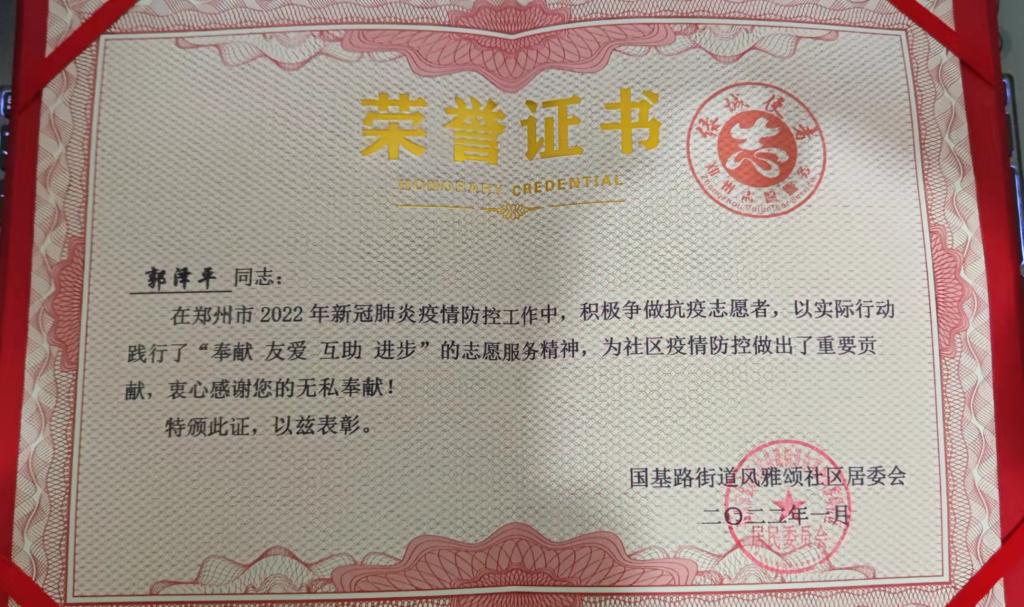 疫情就是命令,防控就是责任。自从1月5日,郑州市新冠肺炎疫情防控指挥部关于开展全市全员核酸检测的通告发布后,郑州市开展了多轮全民核酸检测,时间紧、任务重、节奏快,在疫情防控的压力面前,我认为自己有必要做些什么。于是我主动报名参加了全民核酸检测的志愿者队伍,在自己的社区贡献一份力量。我尽自己所能,坚守岗位,为了这座城市更好的明天。除了参加每一轮的全员核酸活动外,我还参与重点人员的上门核酸检测。那些居家隔离的外来人员、次要密接者和行动不便的老人,需要我们上门检测,为了与全员核酸检测时间不冲突,每天早上六点钟我们便在社区集合,做好准备工作后便出发。帮助他们拿快递物资,扔垃圾等也是我们的职责。虽然很累,但这是新时代青年应有的担当。