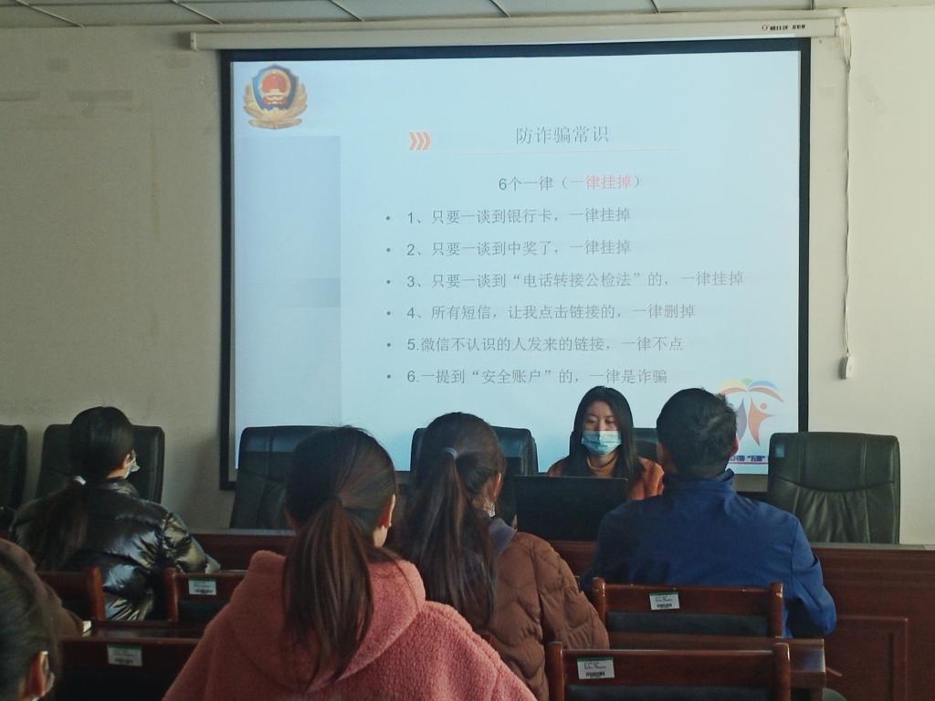 培训会上,张肖老师首先向参会干部明确了其自身的责任与义务,她鼓励各生活委员要身体力行,做好宿舍日常工作,营造良好宿舍氛围,关心同学身心健康。随后,她向大家介绍校园和宿舍安全的重要性,通过分享真实事例和个人经验指出可能存在的寝室安全隐患,向大家讲解8种常见的诈骗手段,让大家了解了财产安全、人身安全、心理健康安全、宗教方面等方面的知识,并帮助大家分析事故发生原因和具体的解决办法。最后,她针对宿舍安全工作做出进一步总结,希望同学们提高自我保护意识和警觉意识,共同筑牢宿舍安全防线,健康开心的度过美好的老员工活。