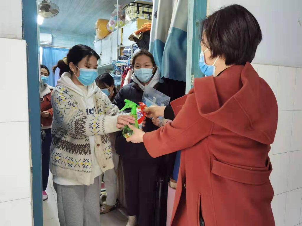 在公司部分员工和四名密接者有时空交集后,公司立刻进行了地毯式筛查,有3个宿舍进行了封闭管理。公司党委高度重视这些员工的思想、生活和健康状况,购置了消毒湿巾、消毒酒精、垃圾袋、洗衣液等物品,将公司的关怀送到这些员工手中,确保他们的身心健康,能在规定区域认真学习,健康生活。