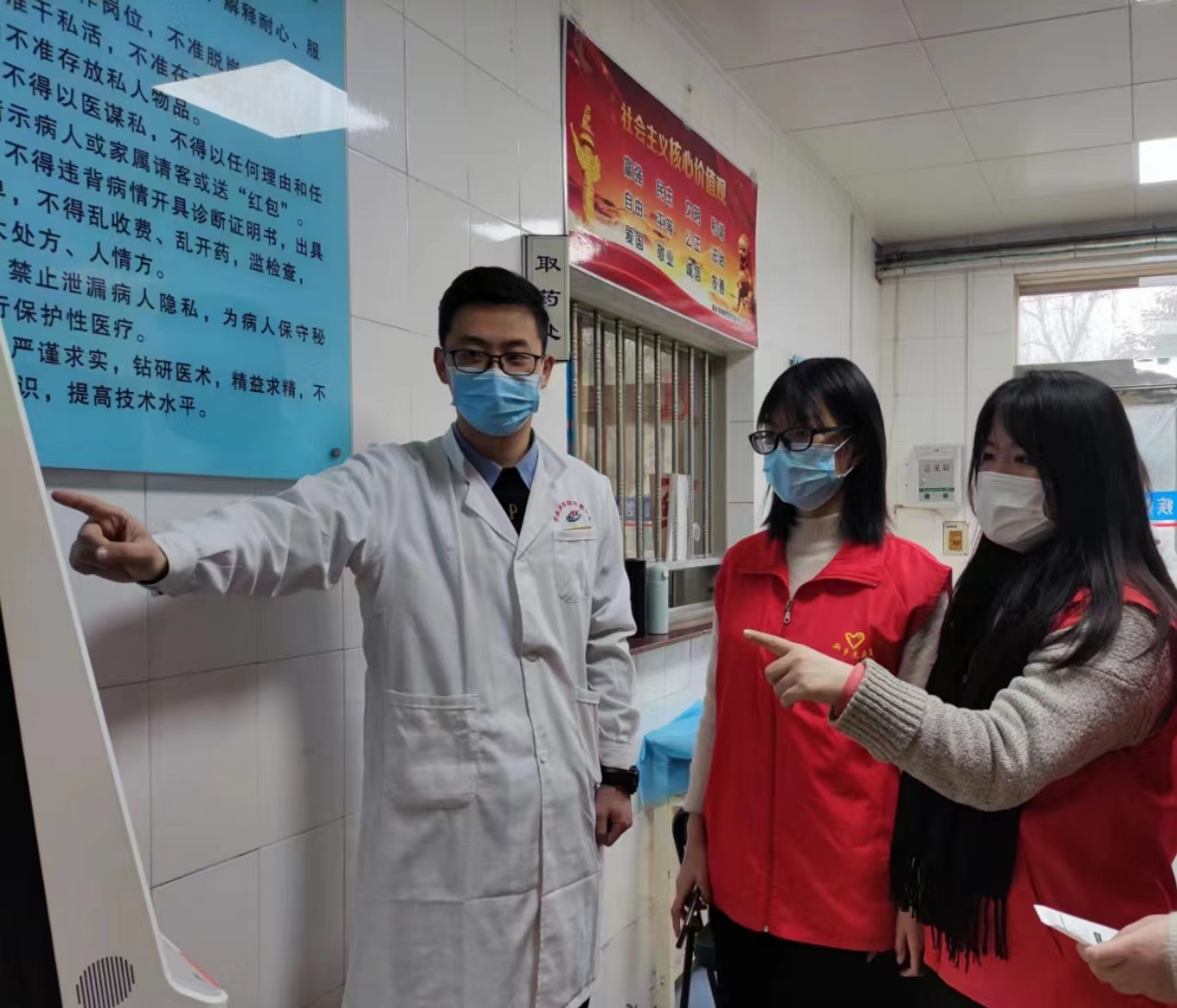 为积极响应院团委的社会实践的号召,开阔自己的眼界,锻炼自己的能力,张慧琳、邢超凡、张慧静和王雅雯四人主动前往河南省新乡市卫滨区新乡市疾病预防控制中心做志愿者,协助医生为患者提供帮助。