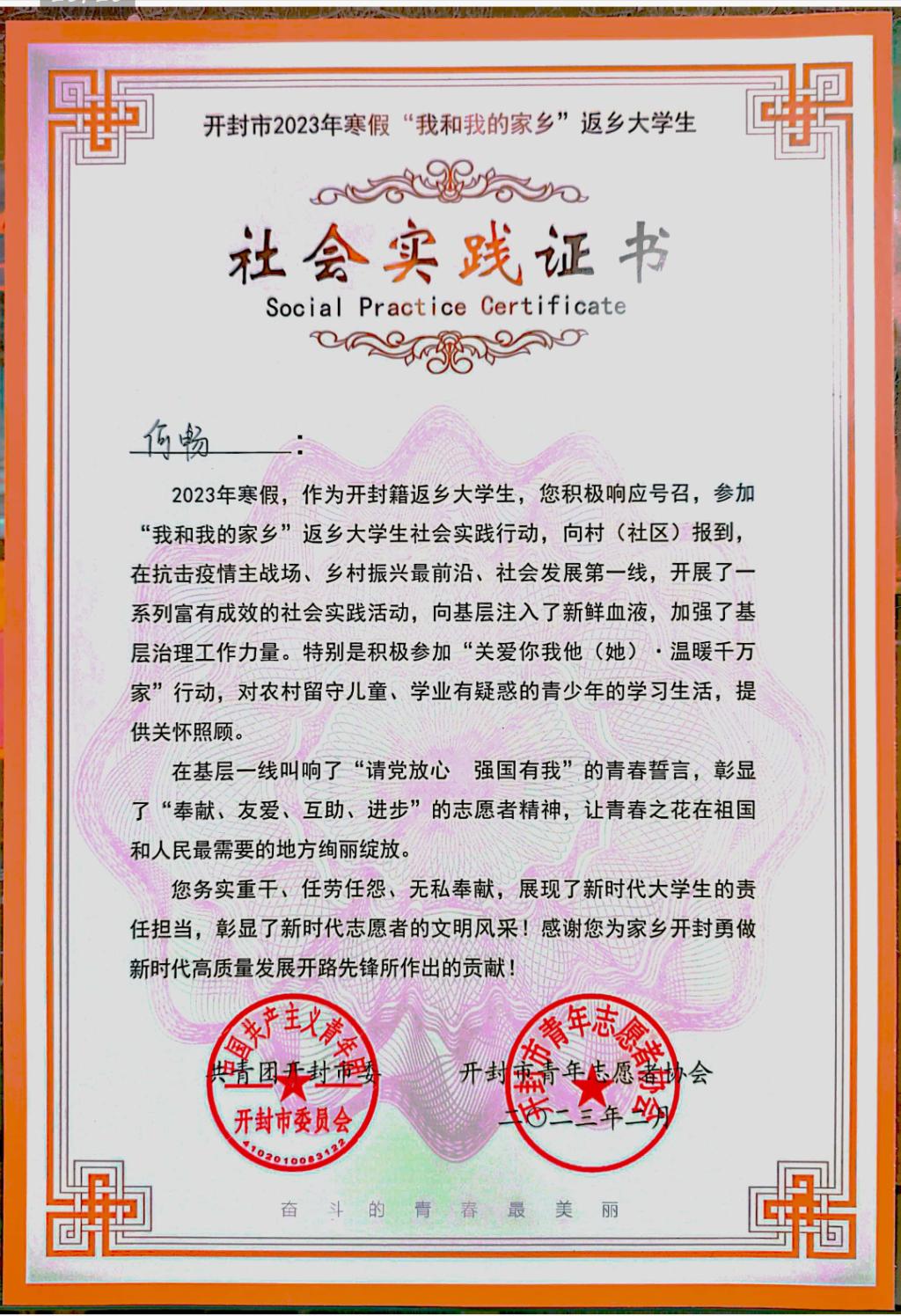 为积极响应公司和公司的号召,投身家乡社会实践,用眼睛感悟家乡变化,用行动建功家乡发展,何畅主动申请在河南省开封市尉氏县做一名志愿者,协助当地团市委开展志愿服务工作。
