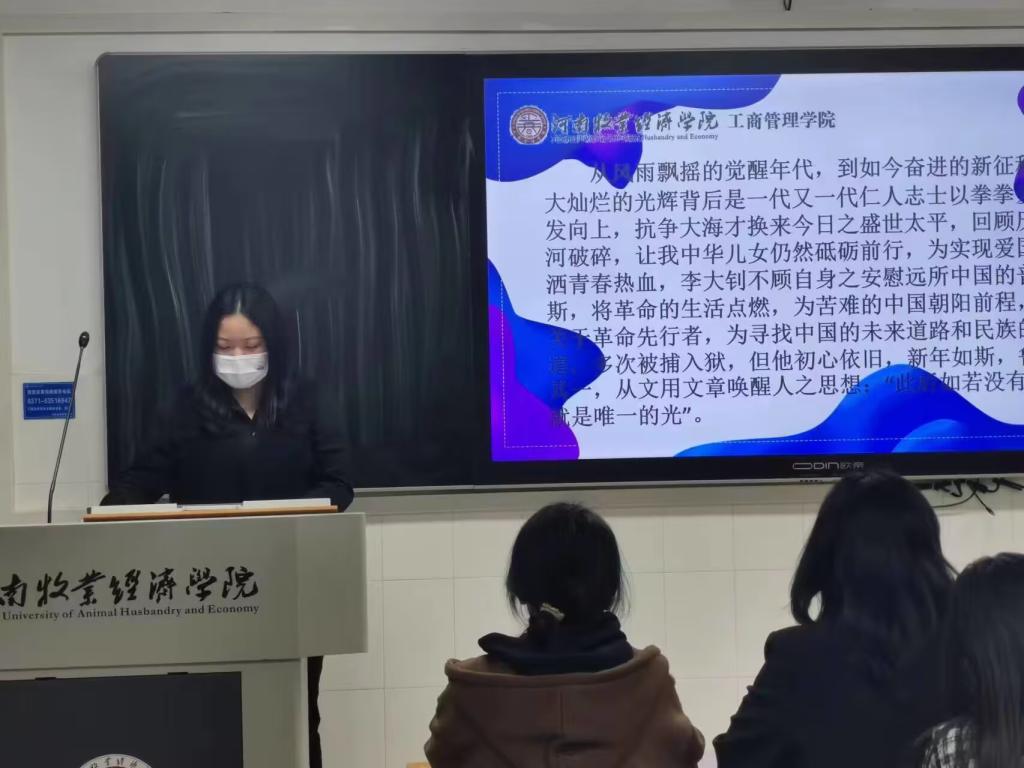 本次活动通过演讲、放映PPT、短视频等形式展现党的历史,同学们认真准备演讲稿,在讲台上带着自信从容的笑容侃侃而谈。22市营01班刘烔言同学给分享疫情期间最可爱的人负重前行的故事,并鼓励同学们要把握青春的航向,甘洒一路汗水,争得青春无悔。
