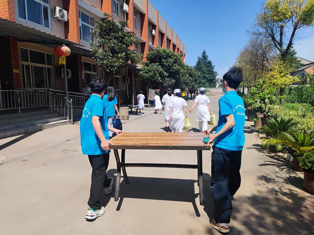 实践活动中,志愿队在负责人的带领下参观、熟悉了老人们日常起居以及活动的场所,了解了养老院的日常安排以及部分老人的身体状况、生活状况以及子女情况。随后,志愿者们有序开展志愿服务,他们分工明确,有的负责帮助工作人员打扫卫生、清扫院内垃圾、搬桌子,有的负责帮助老人收拾内务、陪老人聊天等。志愿者们积极地帮忙打扫房间,整理床铺,叠放衣服,确保老人们的生活环境的干净整洁卫生,在整理的同时,志愿者们还与老人们亲切交谈,用心倾听老人们的心声,深入了解老人们的身心健康等生活状况。工商学子用实际行动践行了志愿服务精神,给老人们送去了温暖,以真情奉献爱心,为养老院带来暖意。