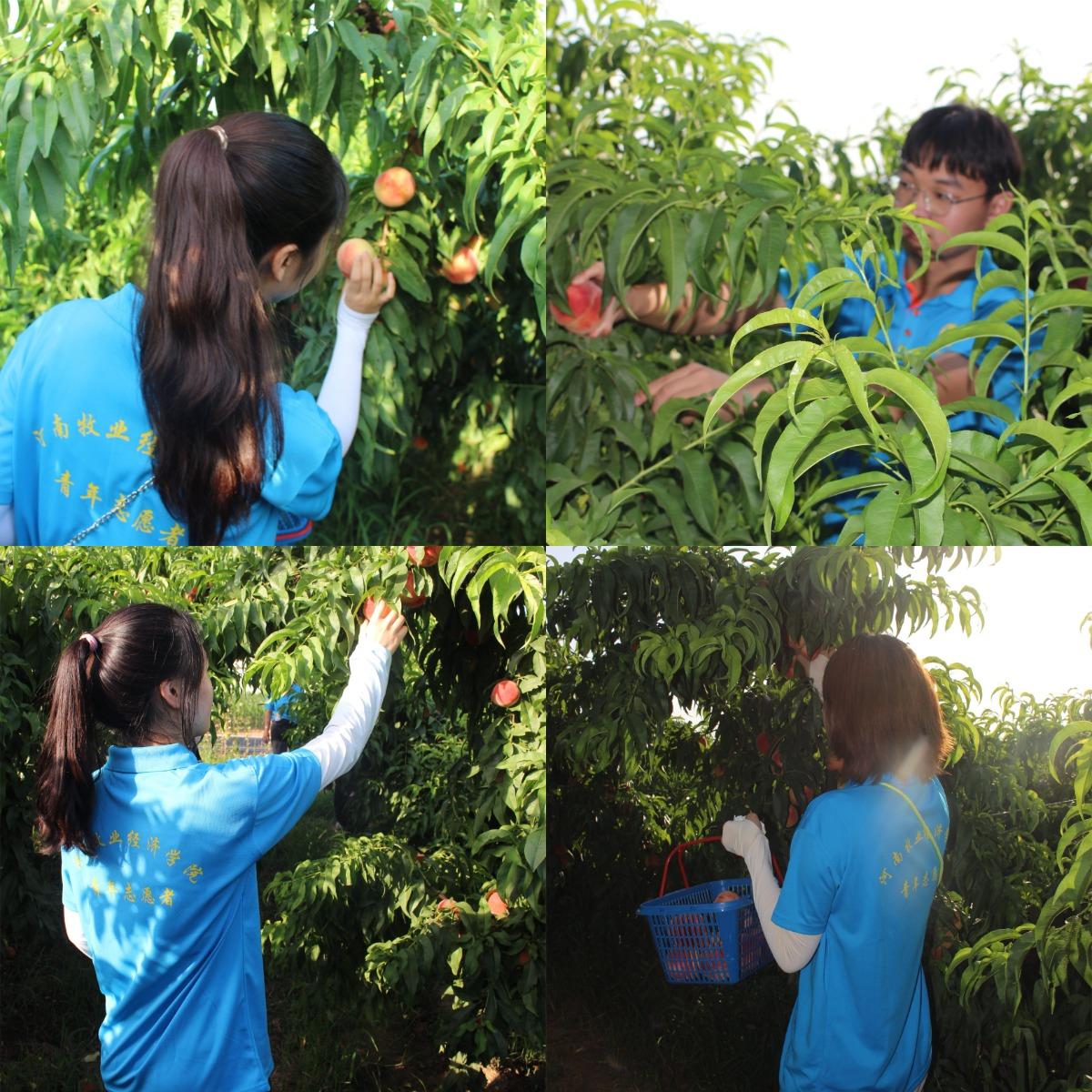 实践活动期间,志愿服务队与鲜桃公社相关负责人进行有效对接与交流,了解“9+1”鲜桃公社的发展历程、种植模式以及经营模式等基本情况。随后,在负责人的带领下,志愿者们与农户一同走进桃园,农户向成员们传授采摘技巧,成员们分工明确、配合默契,亲自动手采摘鲜桃以及分装桃盒,帮助桃园果农摘桃子,参与到鲜桃公社的日常工作中去。尽管天气炎热,但同学们都沉浸在采摘的快乐中,每个人脸上都洋溢着劳动的喜悦。从校园思政课到深入基层走进田间,志愿服务队将课堂学习和劳动实践紧密结合,学习‘自找苦吃’精神,厚植爱农情怀,练就兴农本领,用青年力量激活乡村振兴强大活力,以青年行动奏响乡村振兴奋进强音。