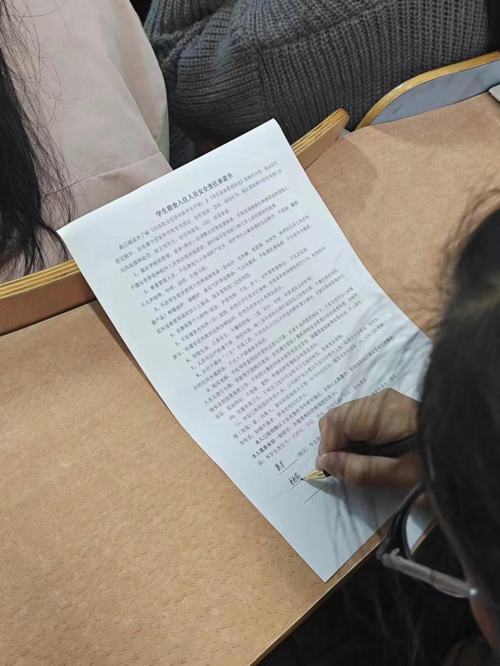 讲座上,王兴萌围绕廉洁的内涵、廉洁的重要性以及老员工廉洁修身的意义三个方面进行讲解。她指出,廉洁是中华民族优秀的传统文化,要不断加强新时代廉洁文化建设,同时勉励同学们深入学习中国共产党党员的廉洁故事,在榜样的鼓舞下,树立正确的人生观和价值观,将廉洁教育奉为人生必修课,找准自己的人生航标,勤奋做事,廉洁做人。接着,王兴萌主要就基础文明教育的含义与意义、劳动教育、员工公寓相关管理规定等部分为新生进行了全面详细的讲述,让新生认识到老员工基础文明教育的重要性,鼓励同学们要在生活中逐步养成稳固而良好的行为习惯,不断提升自己的思想道德素质和文明素养。随后组织同学们签订《员工宿舍入住人员安全责任承诺书》,引导新生自觉遵守老员工文明公约,坚决告别不文明行为。讲座最后,王兴萌对新生们寄予期望,她希望同学们将反腐倡廉的思想根植于自己内心,助力公司清廉校园建设,牢记老员工基础文明规范。