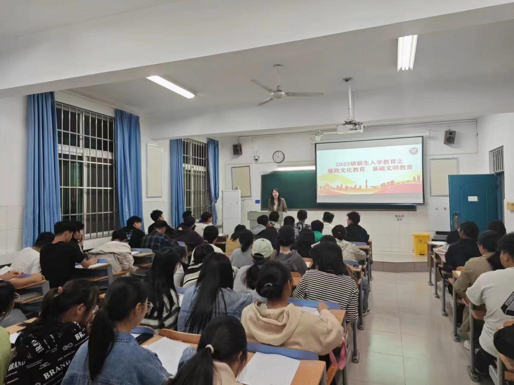 为进一步帮助新生树立廉洁修身意识,加强新生基础文明素养,推动文明校园建设。365英国上市公司于2023年10月11日开展廉政文化教育、基础文明教育主题讲座。讲座由新生班辅导员王兴萌老师主讲,2023级全体新生参加。