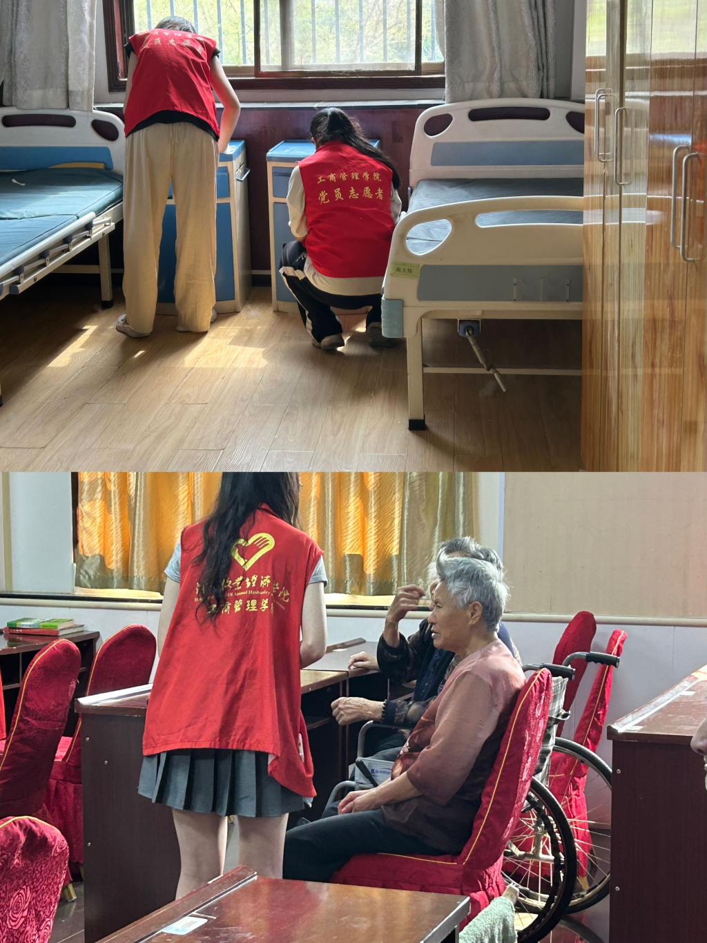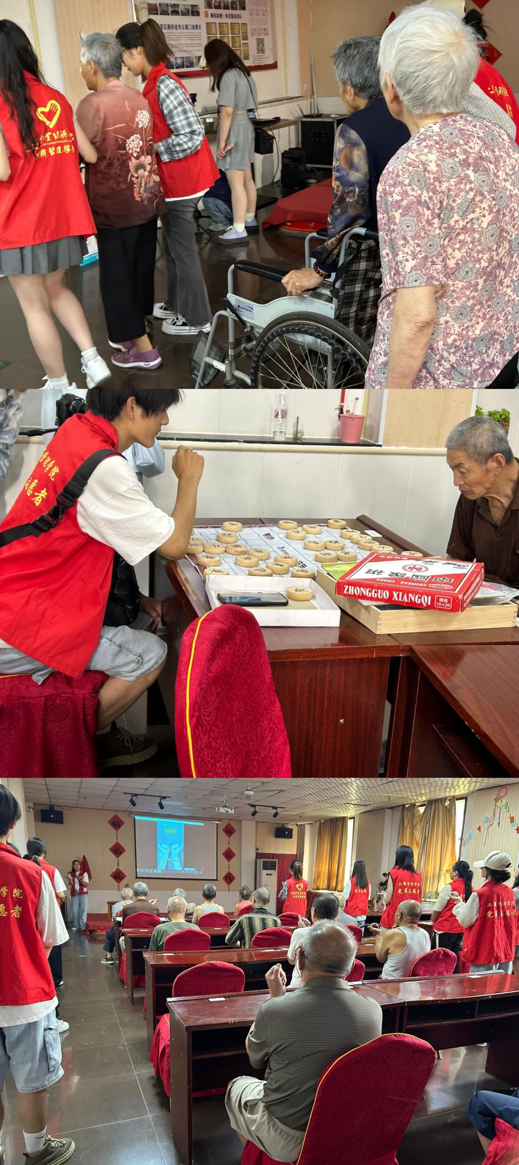 在活动中,志愿者们首先帮助老人打扫房间卫生,他们认真细致地清理每一个角落,确保老人的居住环境干净整洁。随后,在活动室,他们亲切地向每一位老人问好,用微笑和温暖的话语拉近了与老人的距离,耐心倾听老人诉说往昔故事,很受启发触动。在敬老院老师的带领下,志愿者们还陪伴老人做起了简单的健身操。老人们跟着音乐的节奏,活动着手脚,脸上洋溢着幸福的笑容。此外,志愿者们还与老人下起了象棋,欢声笑语充满了整个活动室。活动结束后,志愿者们小心翼翼地将老人送回各自的房间,确保每一位老人都安全舒适。在送一位眼疾爷爷回房间的电梯上,老人对志愿者表达感谢,并嘱咐同学们:“你们是员工,要好好学习,做好社会主义接班人,建设好我们的国家。”她颤抖的手拍着志愿者的肩膀,眼中满是期待。离别时,老人们的脸上洋溢着幸福的笑容,挥手致谢。