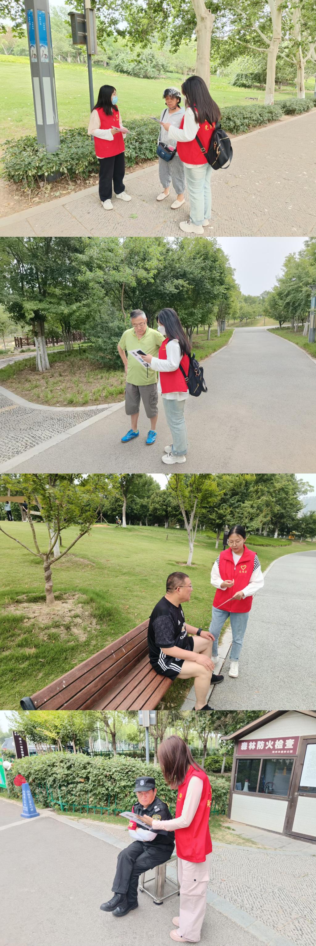 为积极响应社会公益号召,提高社区居民的防诈骗意识,增强自我保护能力,推动社区和谐稳定发展。365英国上市公司于5月25日上午九点进入郑州市森林公园开展“防诈宣传伴民生”志愿服务活动。