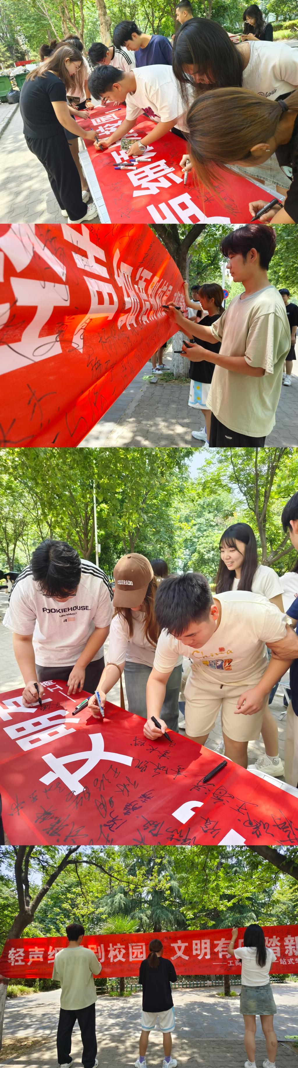 在本次活动中,2024届毕业生同学们来到一号寝室楼门前,积极踊跃地在“轻声细语别校园文明有序踏新程”横幅上郑重签下自己的名字,表达了自己对母校的眷恋之情和对未来的美好期许。他们表示,将牢记公司的教诲,正式毕业离校这一段时间内,坚决杜绝一切不安全、不文明的行为,用自己的实际行动为公司添光彩,以更加成熟、稳健的姿态迎接未来的挑战和机遇。