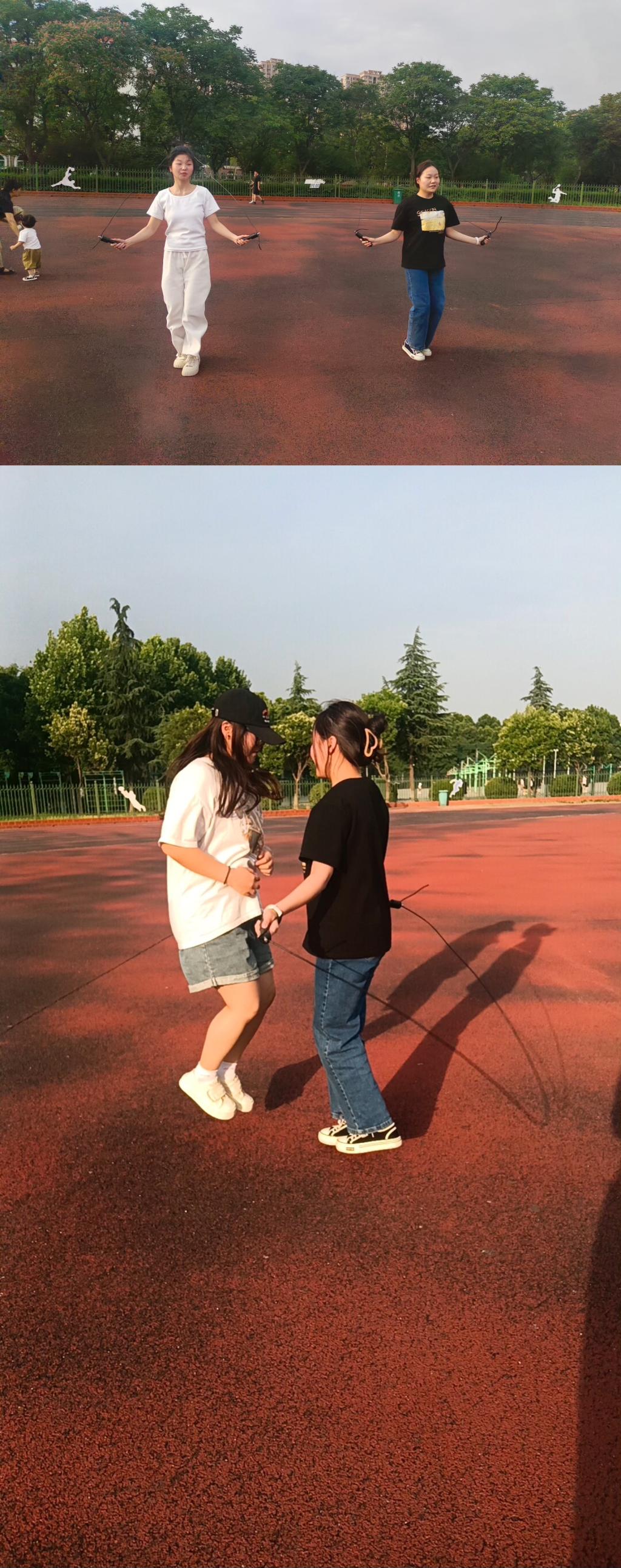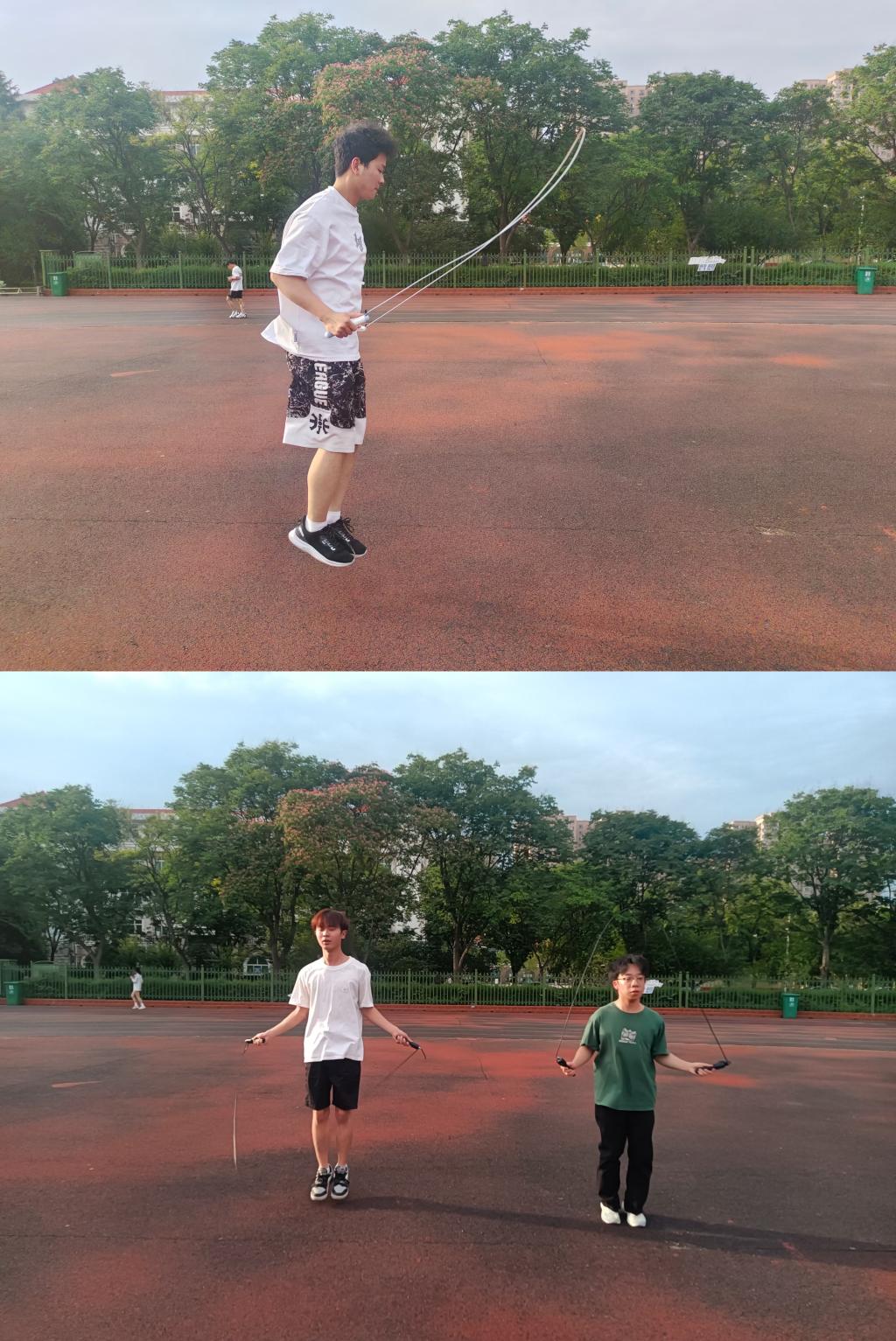 活动现场,彩色的跳绳在阳光下熠熠生辉,划出一道道绚丽的弧线。参赛选手们身手矫健,步伐轻盈,每一次起落都显得那么精准有力。他们或以个人形式挑战自我,展现高超的跳绳技艺;或以团队形式默契配合,共同追求最佳成绩。整个比赛过程紧张而有序,观众们的热情被充分点燃,掌声和欢呼声此起彼伏,为选手们加油鼓劲。经过激烈的角逐,各项比赛的优胜者脱颖而出。在单人跳项目中,23国商01班张明同学以一分钟双摇104个的惊人成绩夺得冠军,其精湛技艺和出色表现赢得了现场观众的热烈掌声和广泛赞誉。23国商01班李建毅同学则以一分钟单人跳142个的优异成绩荣获亚军,22国商01班闫泳同学紧随其后,以一分钟单人跳116个的成绩获得季军。