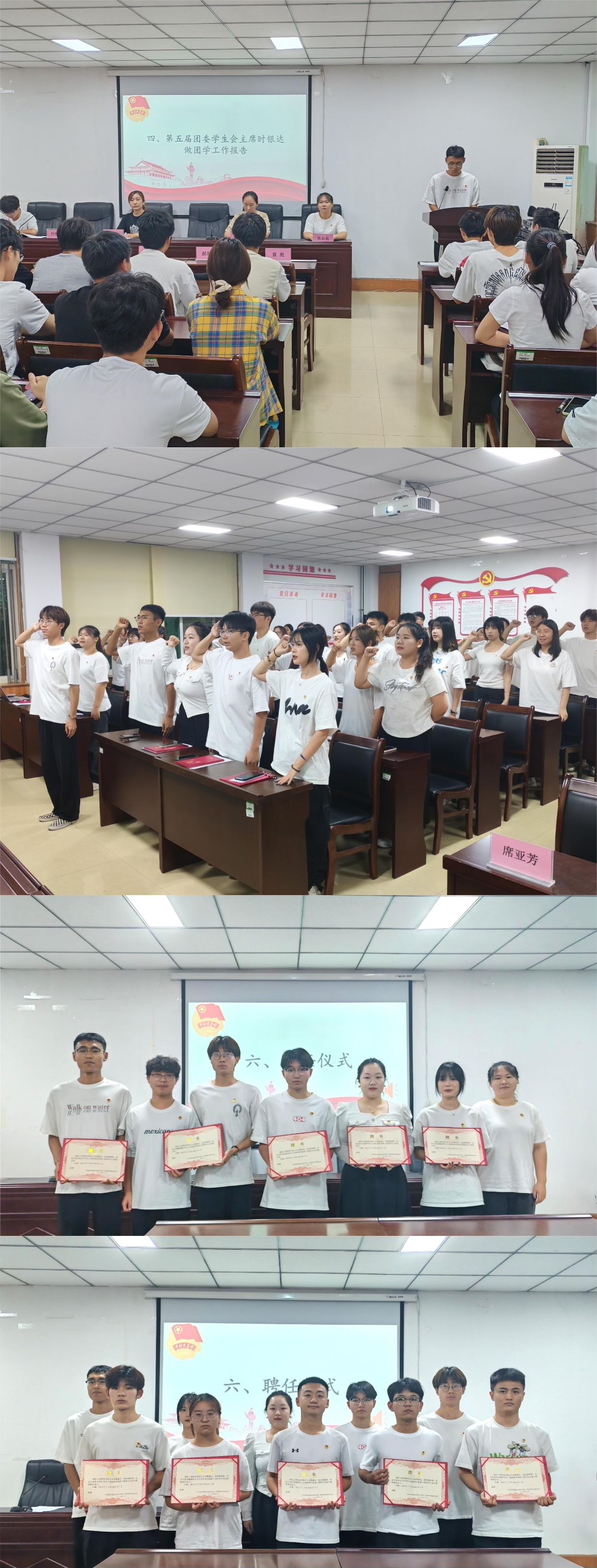随后,院团委副书记席亚芳宣读第六届团委员工会成员名单,并由第五届团学干部为新当选团学干部颁发聘书。第六届团学会主席团成员魏轶豪作为代表发言并带领新一届团学干部宣誓,全体团学会成员郑重承诺,在任职期间认真履行干部职责,继续秉承服务同学的宗旨,不忘初心,勇毅前行,不负青春,共创未来。最后,院团委书记贾雪致闭幕词,她希望全体员工干部能够坚定信念,勇于担当,敢于创新,严于律已,共同进步,以更加饱满的热情、更加务实的作风投入到工作中去。