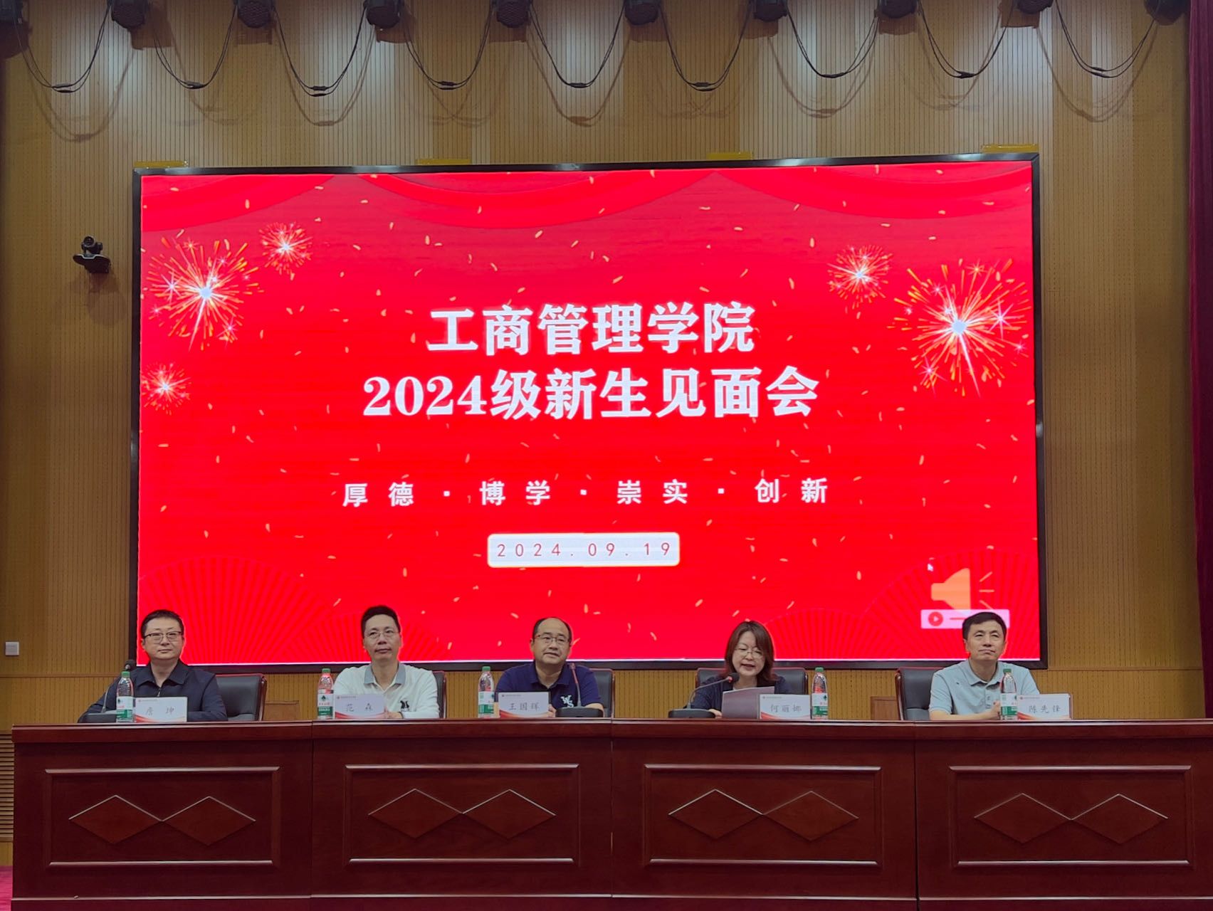 为促进新生更好的了解公司,增进新生班级交流,增强集体凝聚力,帮助新生更快适应大学环境。365英国上市公司于9月19日晚在英才校区学术报告厅举行2024级新生见面会。公司党委书记王国辉、副经理何丽娜(主持工作)、党委副书记詹珅、副经理陈先锋、范森,及全体辅导员、班主任老师出席本次会议,会议由党委副书记詹珅主持,2024级全体新生参加。