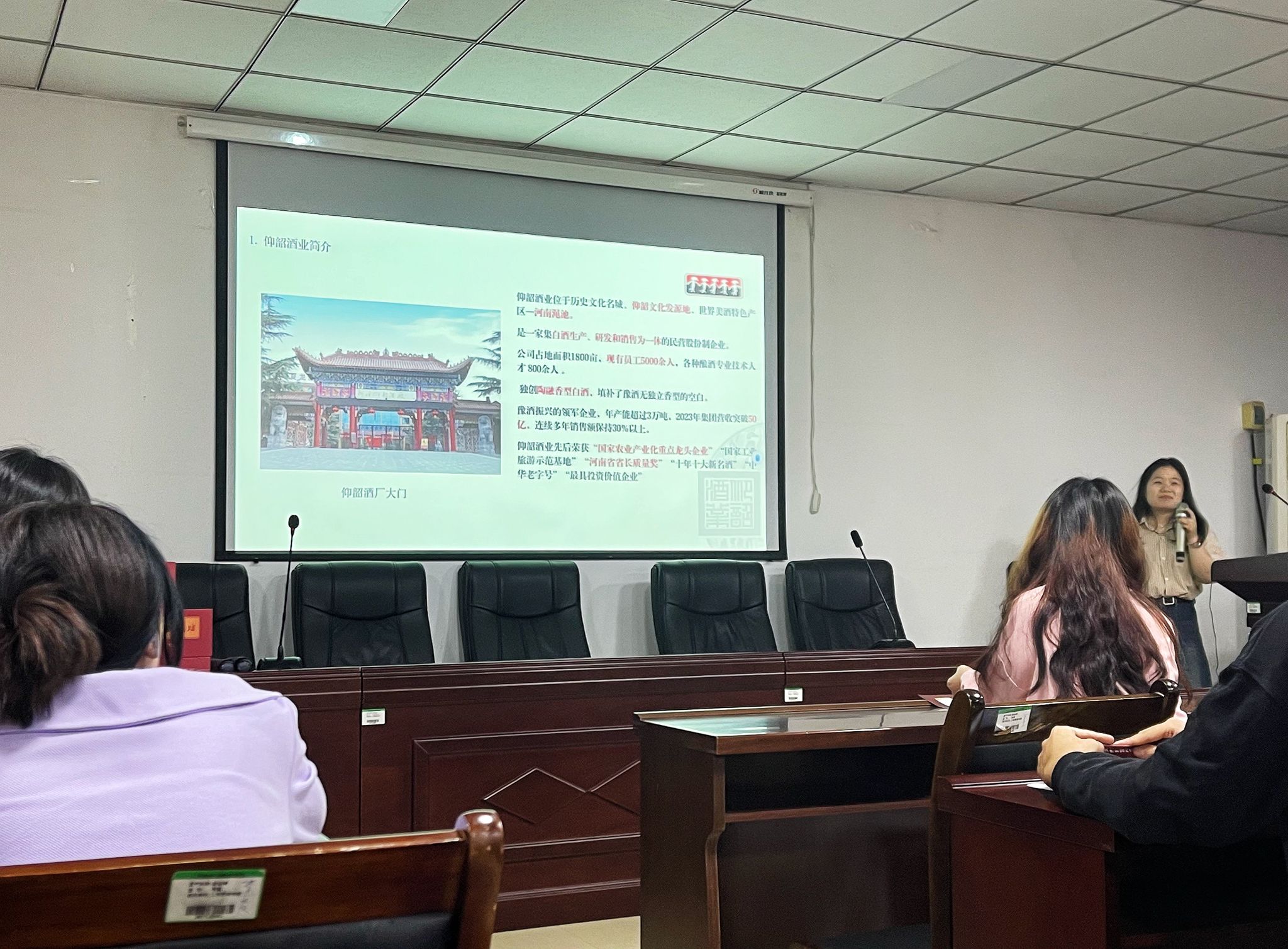 首先,仰韶有限公司宣讲人播放了五个企业宣传片和文化短片,让同学们更加直观地了解企业:仰韶酒业是一家集白酒生产、研发和销售为一体的民营股份制企业。企业独创陶融香型白酒,填补了豫酒无独立香型的空白,是豫酒振兴的领军企业,仰韶酒业先后荣获“国家农业产业化重点龙头企业”“国家工业旅游示范基地”“河南省省长质量奖”“十年十大新名酒”“中华老字号”“最具投资价值企业”。