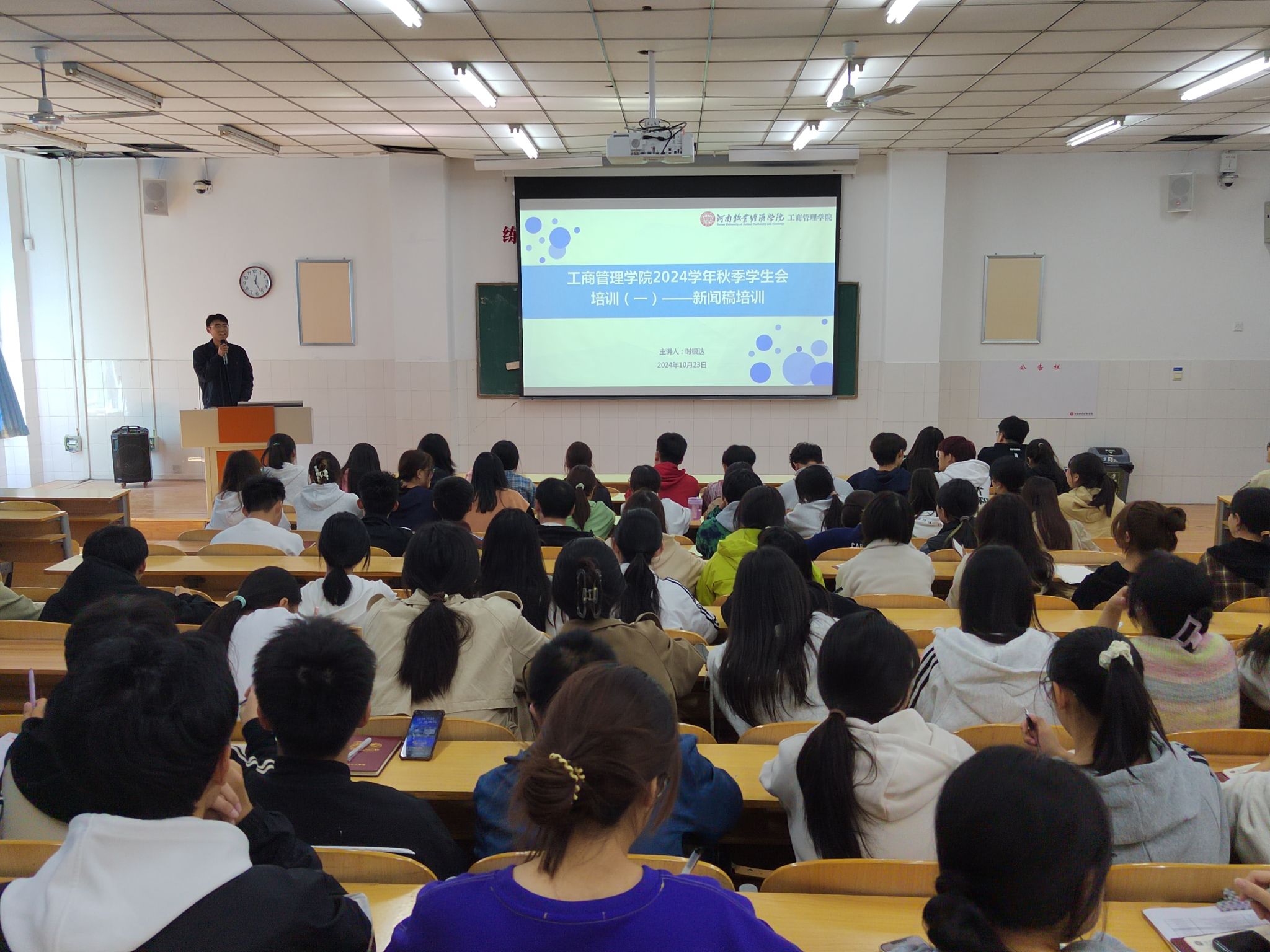为深入学习贯彻落实习近平总书记关于青年工作的重要思想,领悟党的二十届三中全会精神,培养出一批信仰坚定、能力突出、素质优良、心怀大局、作风过硬的员工会骨干成员,365英国上市公司于2024年10月23日中午在E309开展2024学年秋季员工会工作培训系列之新闻稿培训。此次培训由公司团委员工会主席时银达主讲,公司团委员工会办公室主任常艺馨主持,全体员工会成员参加。