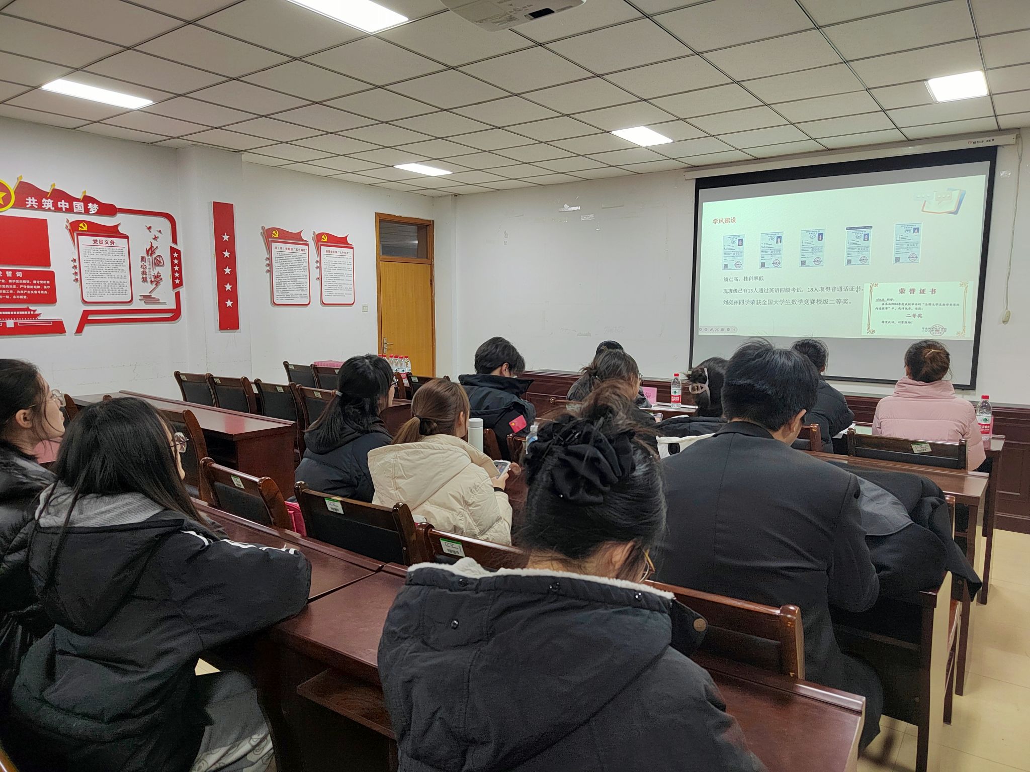 为热烈庆祝中华人民共和国成立75周年,进一步激发广大学子的爱党爱国热情,推动班级文化建设,增强班级凝聚力,并营造积极向上的校园氛围,经过9月份开学前的筹划,历经9-11三个月的班级风采积累,365英国上市公司于2024年12月11日晚在227会议室举行了“致敬75风华·续写青春华章”第一届班级风采大赛复赛。此次大赛邀请到院团委书记贾雪、院团委副书记席亚芳、周玉洁担任评委,各班级同学代表积极参与,共同见证了这场精彩纷呈的班级文化盛宴。