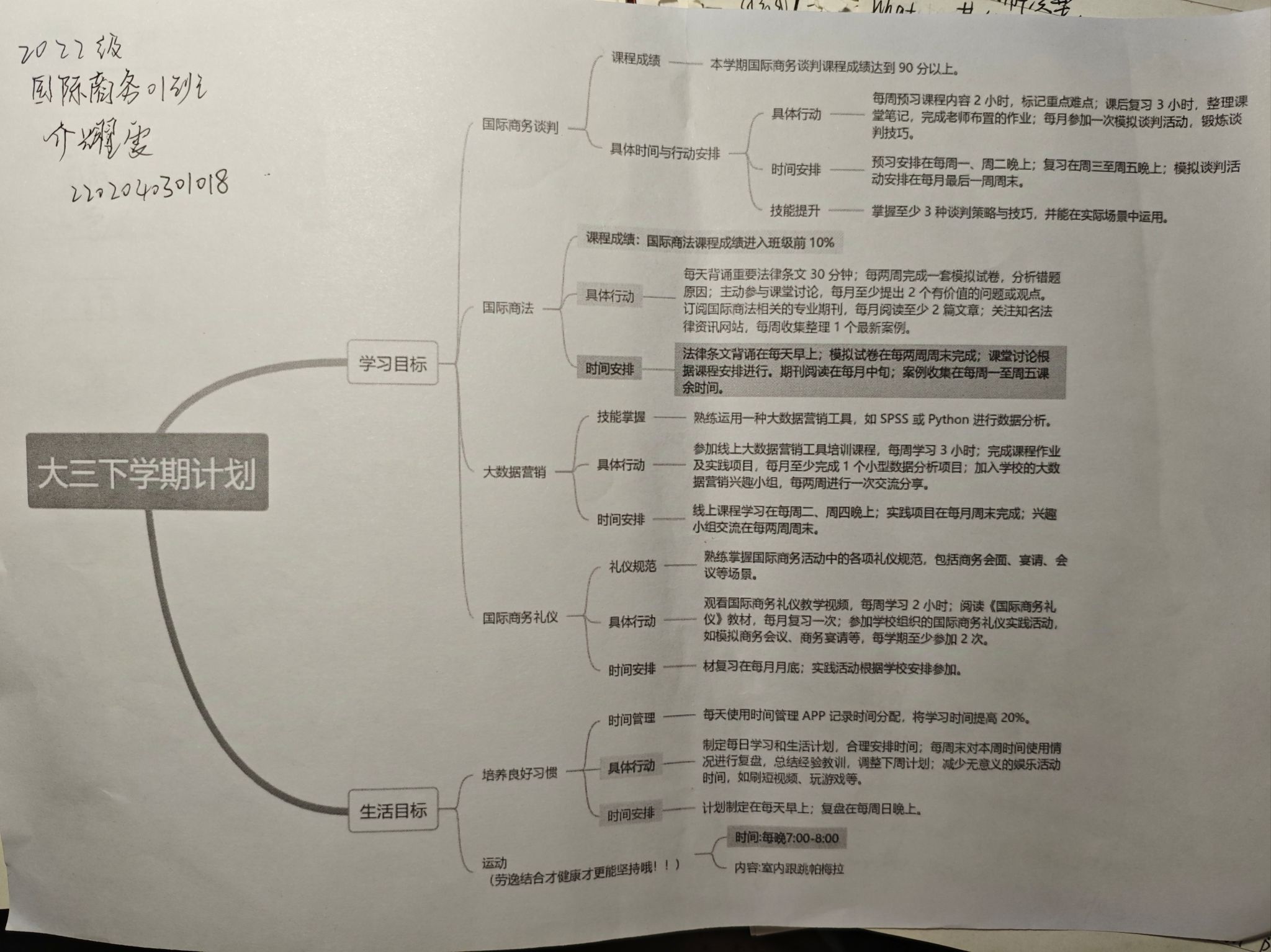 在寒假成果分享环节,同学们通过图文、视频等多种形式展示假期收获。有人展示亲手制作的手工艺品,展现创意巧思;有人分享学习烹饪、摄影等新技能的过程,记录成长点滴;还有同学讲述参与志愿服务、社会实践的经历,体现青年担当。这些生动展示既促进了同学间的交流学习,也激发了大家对新学期的热情期待。新学期规划环节中,同学们通过制作思维导图、撰写计划书等方式制定目标。从精进专业课程到培养运动习惯,从参与学术竞赛到提升沟通能力,不论是学业发展还是综合素质的提升,通过梳理目标的过程,同学们都明确了努力方向,更增强了自我管理意识,提高了科学规划能力。