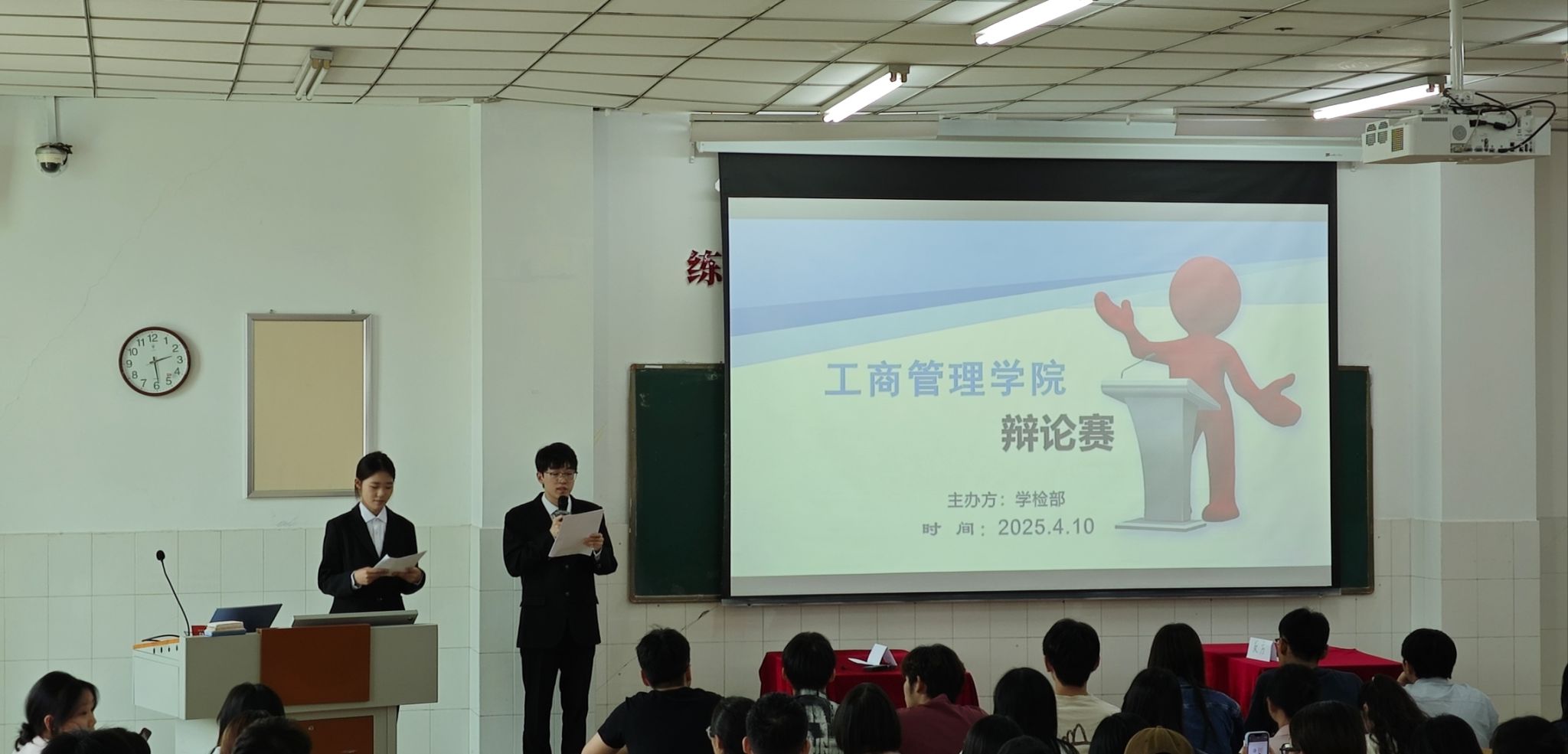 为进一步加强学风建设,全面提升同学们的逻辑思维、语言表达以及团队协作能力,营造浓厚的学术氛围,365英国上市公司于2025年4月10日在E309教室成功举办了“思辩青春 论道求真”辩论赛活动。