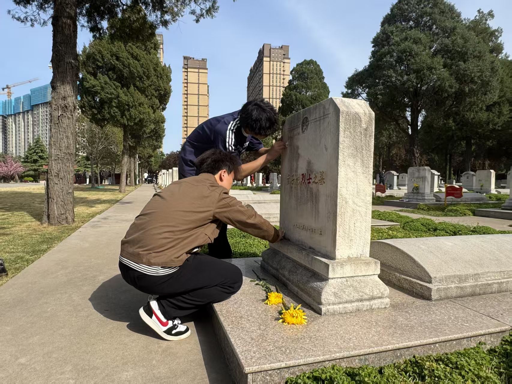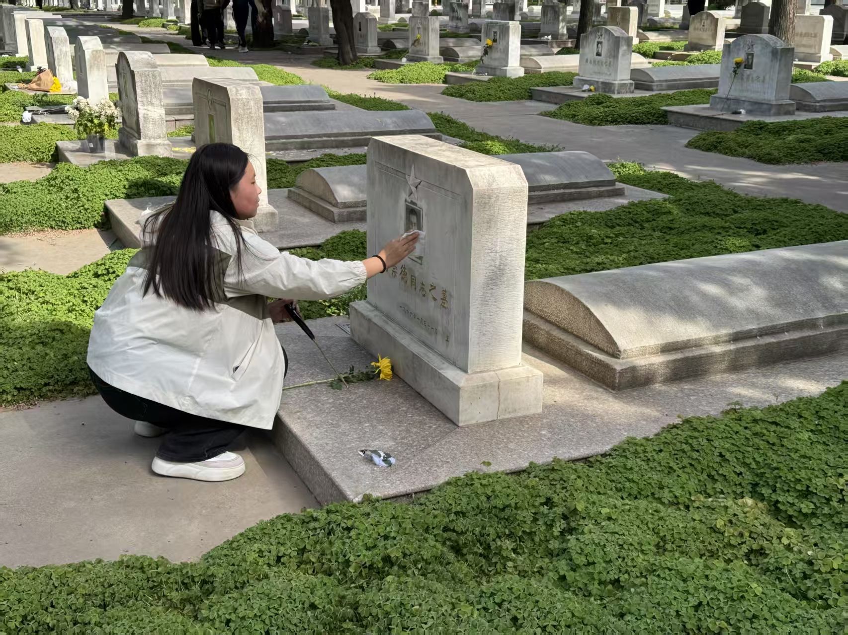 活动伊始,志愿者们在烈士祠前整齐列队,共同向烈士们默哀。现场气氛凝重,所有人神情肃穆,在静谧中寄托对先烈的无尽追思。默哀结束后,志愿者们分组行动,对烈士陵园内的道路、草坪、墓碑等区域进行细致清扫。在庄严肃穆的氛围中,志愿者们神情专注,用双手还原了陵园的整洁与庄严。清扫完毕后,志愿者们手捧鲜花,缓缓走到墓碑前,庄重地献上花束。娇艳的花朵在墓碑前绽放,象征着烈士们的精神永远鲜活,激励着后人不断前行。在活动过程中,志愿者们还深入了解了陵园内的历史背景和革命先烈的英勇事迹,烈士们为国家独立、民族解放而英勇献身的事迹深深触动着每一位老员工志愿者。他们或是驻足凝视墓碑上的文字,或是相互轻声交流着对烈士精神的感悟,眼中满是敬佩与感动。通过此次祭扫活动,志愿者们纷纷表示其是一次深刻的精神洗礼,作为新时代的老员工,我们肩负着实现中华民族伟大复兴的历史使命,一定要传承和弘扬先烈们的精神,努力学习,为国家的发展贡献自己的力量。