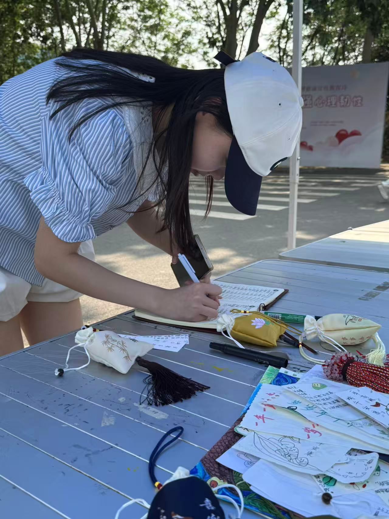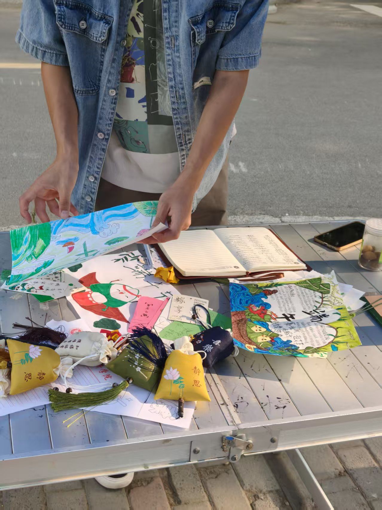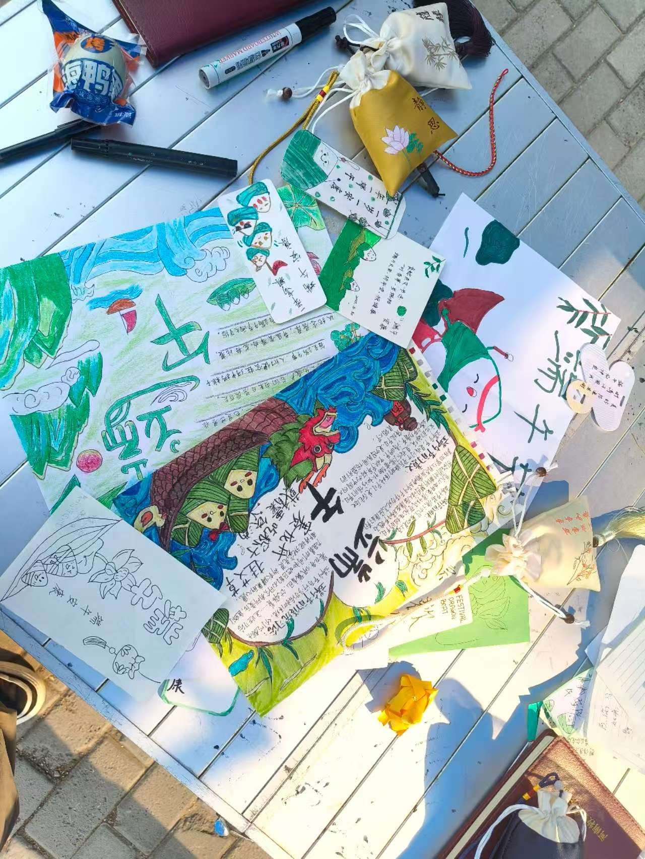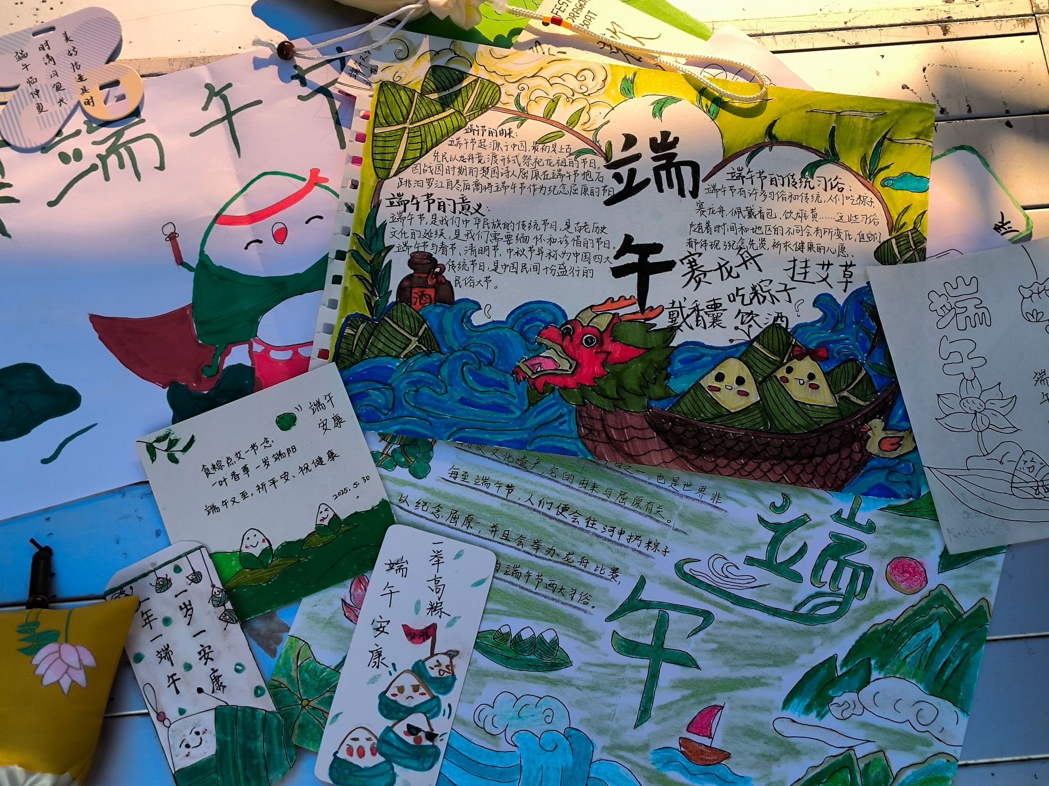 活动以书写祈福卡、绘制手抄报、制作端午手工艺品三种形式展开。书写祈福卡环节最为瞩目,同学们手持精美书签,认真写下“愿家人平安喜乐”“祝大家端午安康”等真挚祝福。这些承载着端午祈福传统寓意的祈福卡,成为传递美好祝愿的纽带。绘制手抄报区域同样热闹,同学们围绕端午节起源、习俗、传说等内容自由创作,一幅幅精美的手抄报不仅展现了绘画功底,更加深了同学们对端午文化内涵的理解。制作端午手工艺品环节将活动氛围推向高潮。在工作人员指导下,同学们动手制作艾草香囊、五彩绳、植物拓印等手工艺品。艾草香囊清香四溢,有驱虫辟邪之效;五彩绳色彩斑斓,寓意祈福纳吉;植物拓印将自然之美定格。同学们交流心得、分享喜悦,现场充满欢声笑语。
