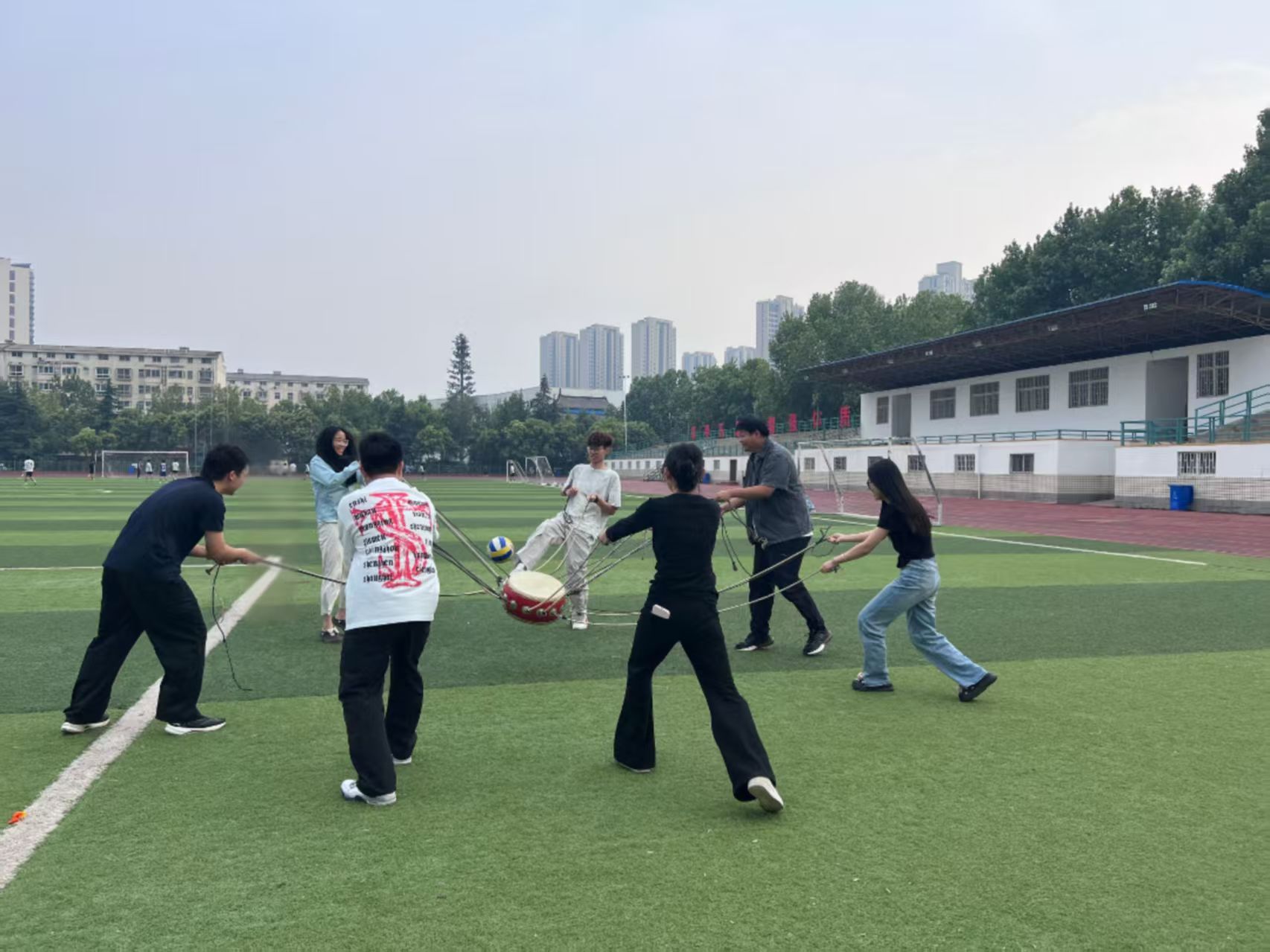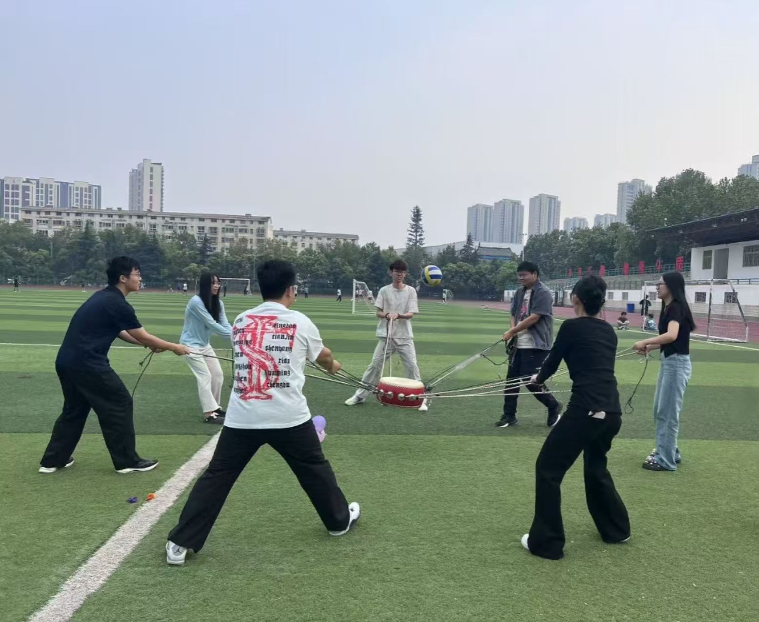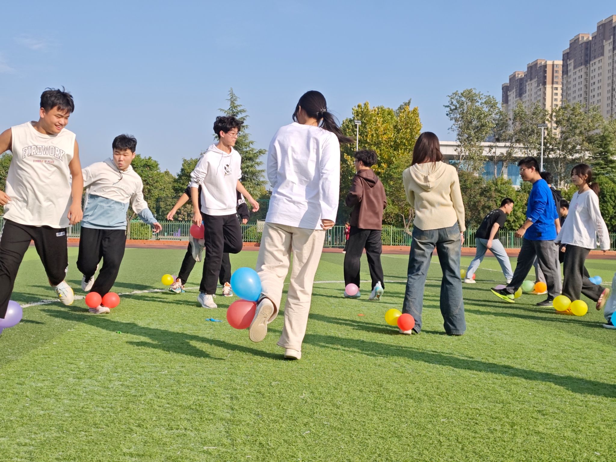 活动共设置四个趣味横生的活动模块,现场气氛热烈。“N人N足”环节中,同学们分组协作,相邻脚踝相绑,向终点奋力奔跑,在培养团队默契的同时,尽显青春活力;“踩气球”环节紧张刺激,同学们在保护自己气球的同时,巧妙“攻击”他人,现场加油声、欢笑声此起彼伏,充分展现了同学们的机敏与勇敢;“夹气球”项目里,两人一组背夹气球运输并坐爆,在相互配合中加深了彼此信任;“鼓动人心”中,小组成员齐心协力控制鼓面颠球,考验着团队的协作与协调能力。在活动过程中,小组成员积极配合,讨论取胜战术,每个小组都表现出充沛的活力、默契的团队协作和强烈的竞争意识。