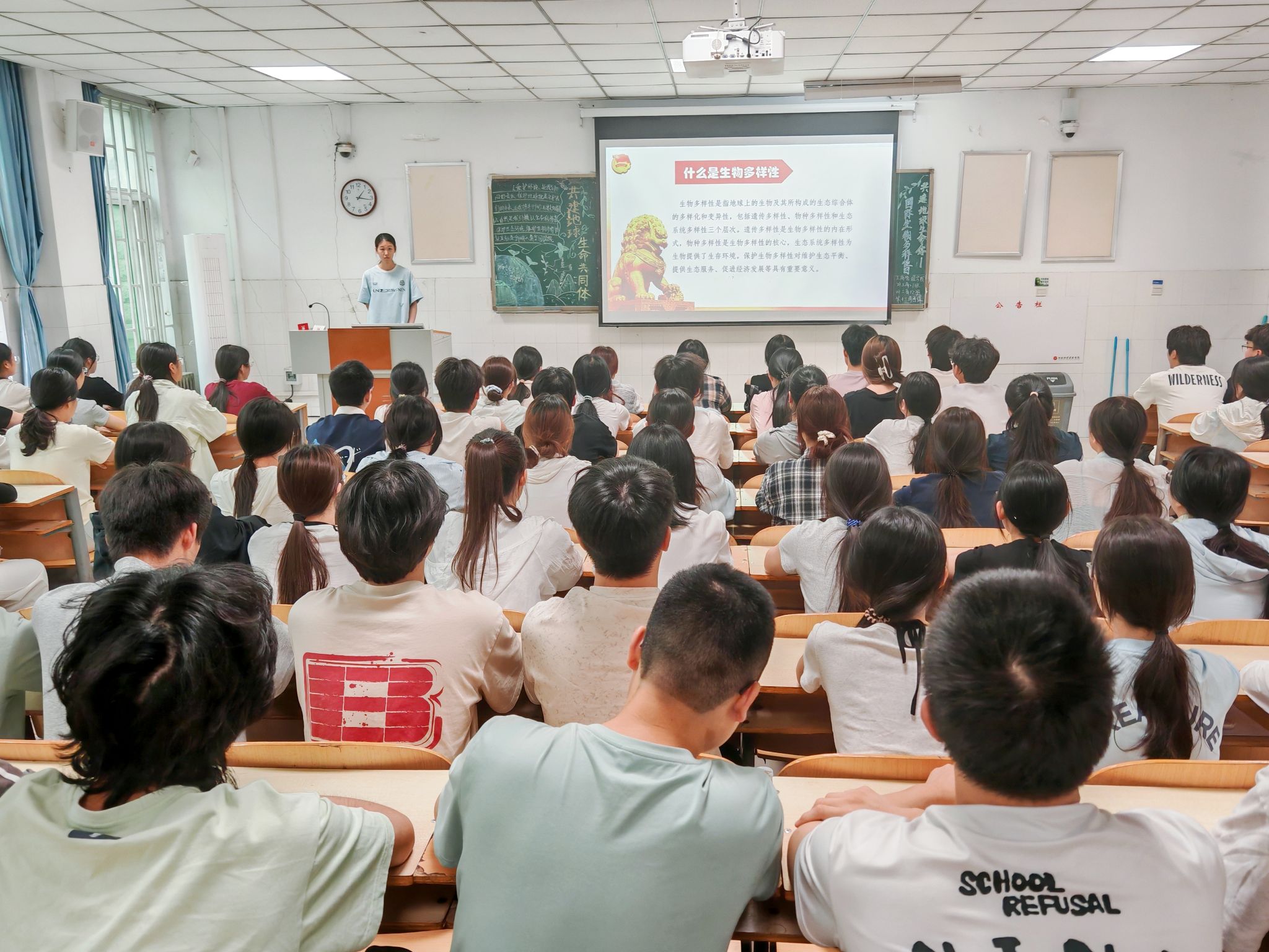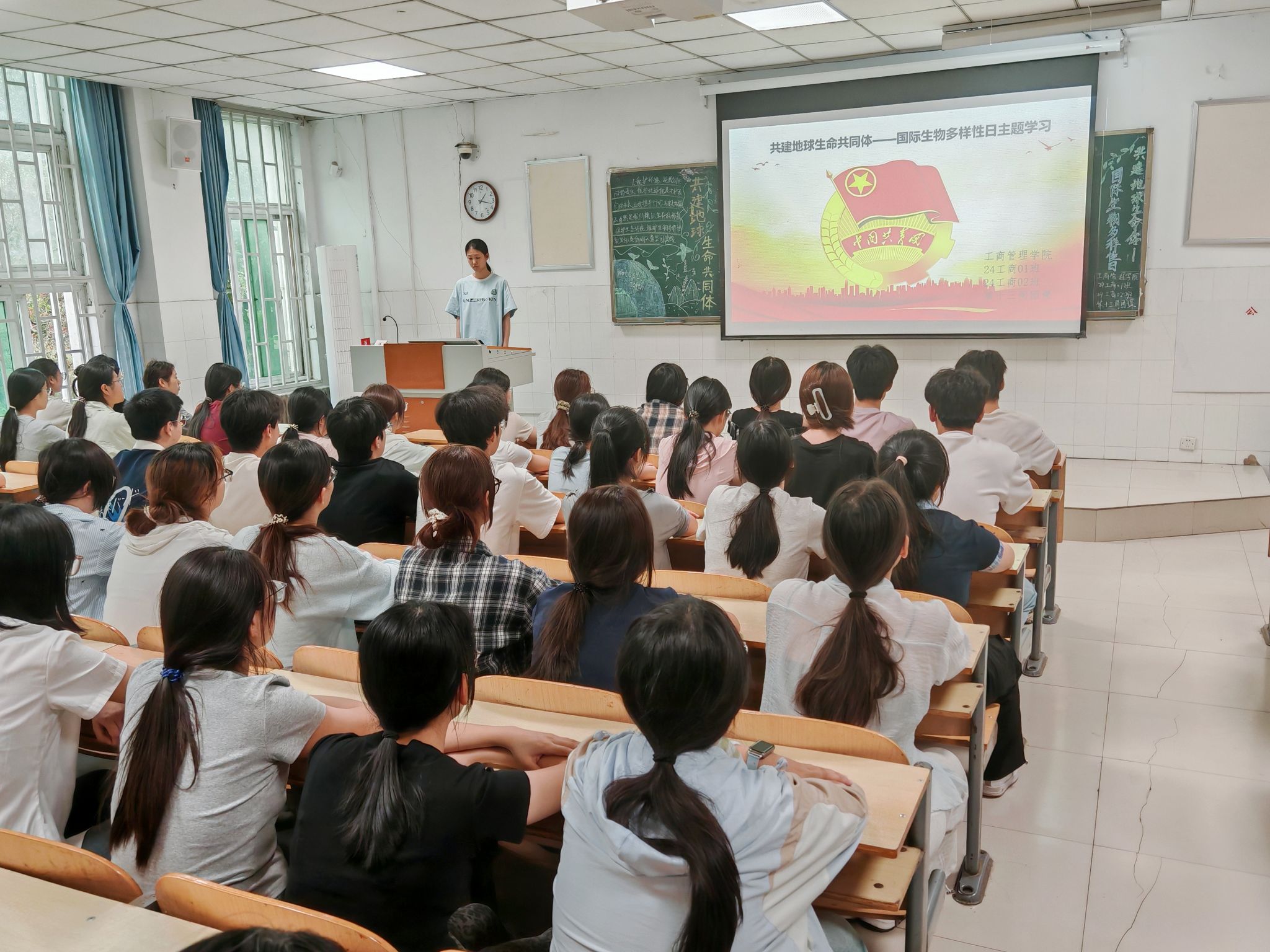 团课伊始,团支书深入讲解了习近平生态文明思想中关于生物多样性保护的重要论述,阐述了人与自然和谐共生的理念。同时,结合国际生物多样性保护的案例,强调了全球在生物多样性保护上的共同努力与中国担当,使同学们深刻认识到生物多样性保护是全球可持续发展的关键环节。随后,团课进入低碳环保生活方式倡导环节。通过播放环保纪录片,详细介绍了节约水电、绿色出行、践行垃圾分类等低碳环保生活方式,鼓励同学们将低碳环保融入日常生活。最后,团支书作出总结,强调生物多样性保护与每个人息息相关,作为新时代青年,要积极践行绿色生活理念,以实际行动为生态文明建设贡献力量。同学们纷纷表示,将以此次团课为契机,从自身做起,从小事做起,努力成为生态文明建设的宣传者、实践者和推动者,为构建美丽中国贡献青春力量。