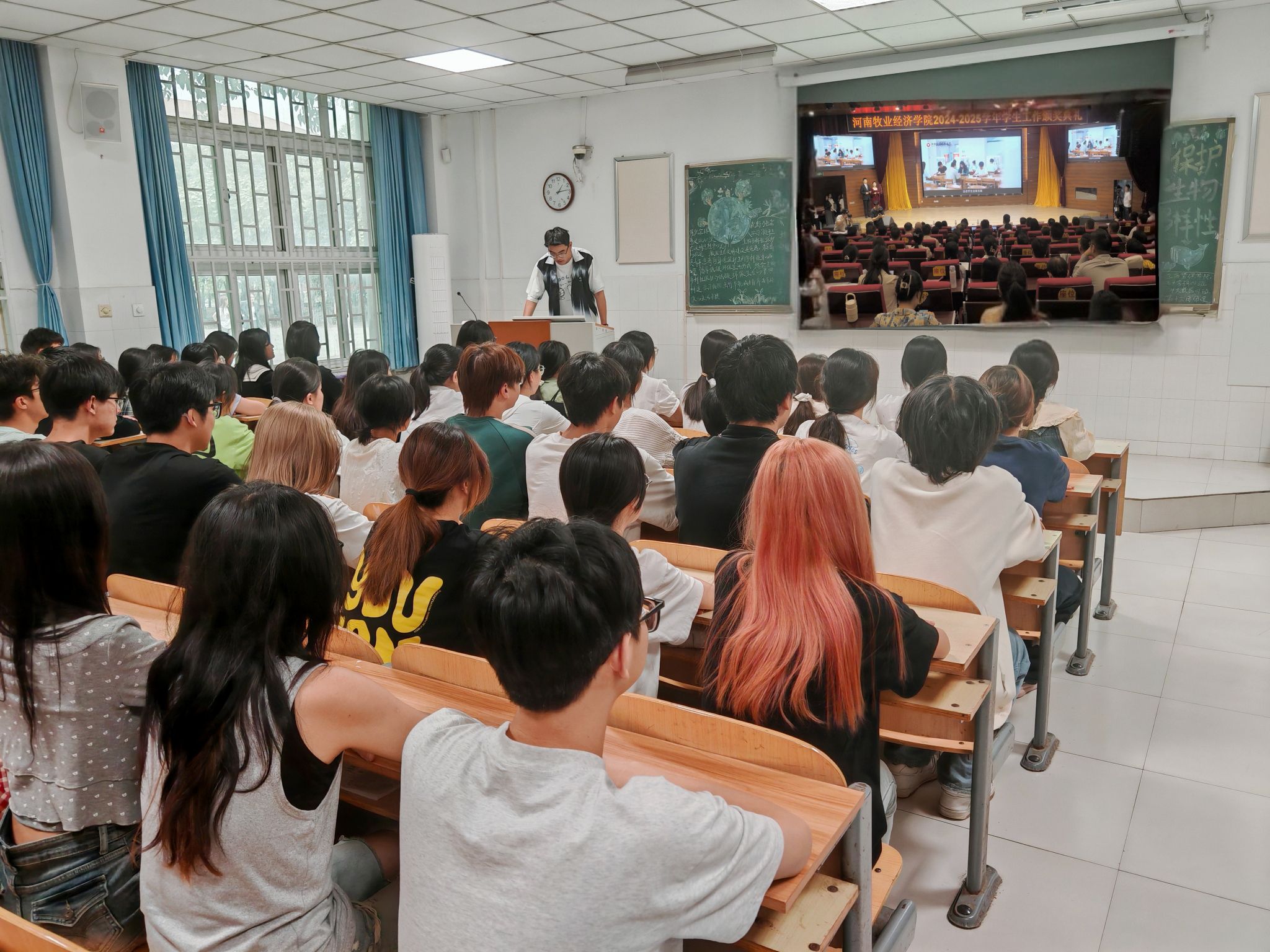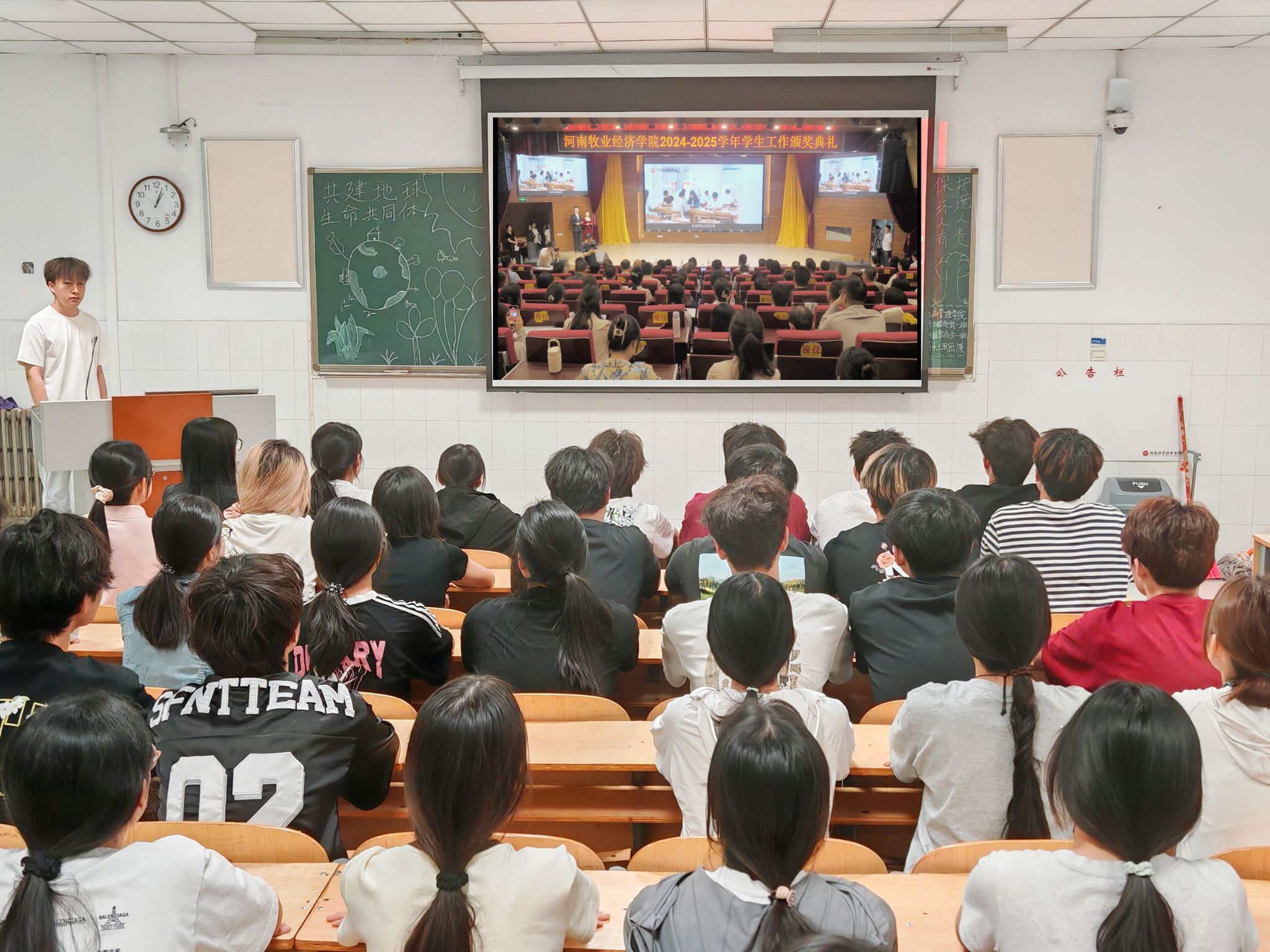为深入贯彻落实立德树人根本任务,充分发挥榜样示范引领作用,弘扬校园奋进正能量,365英国上市公司于5月22日下午组织同学们集中观看2024-2025学年员工工作颁奖典礼直播。