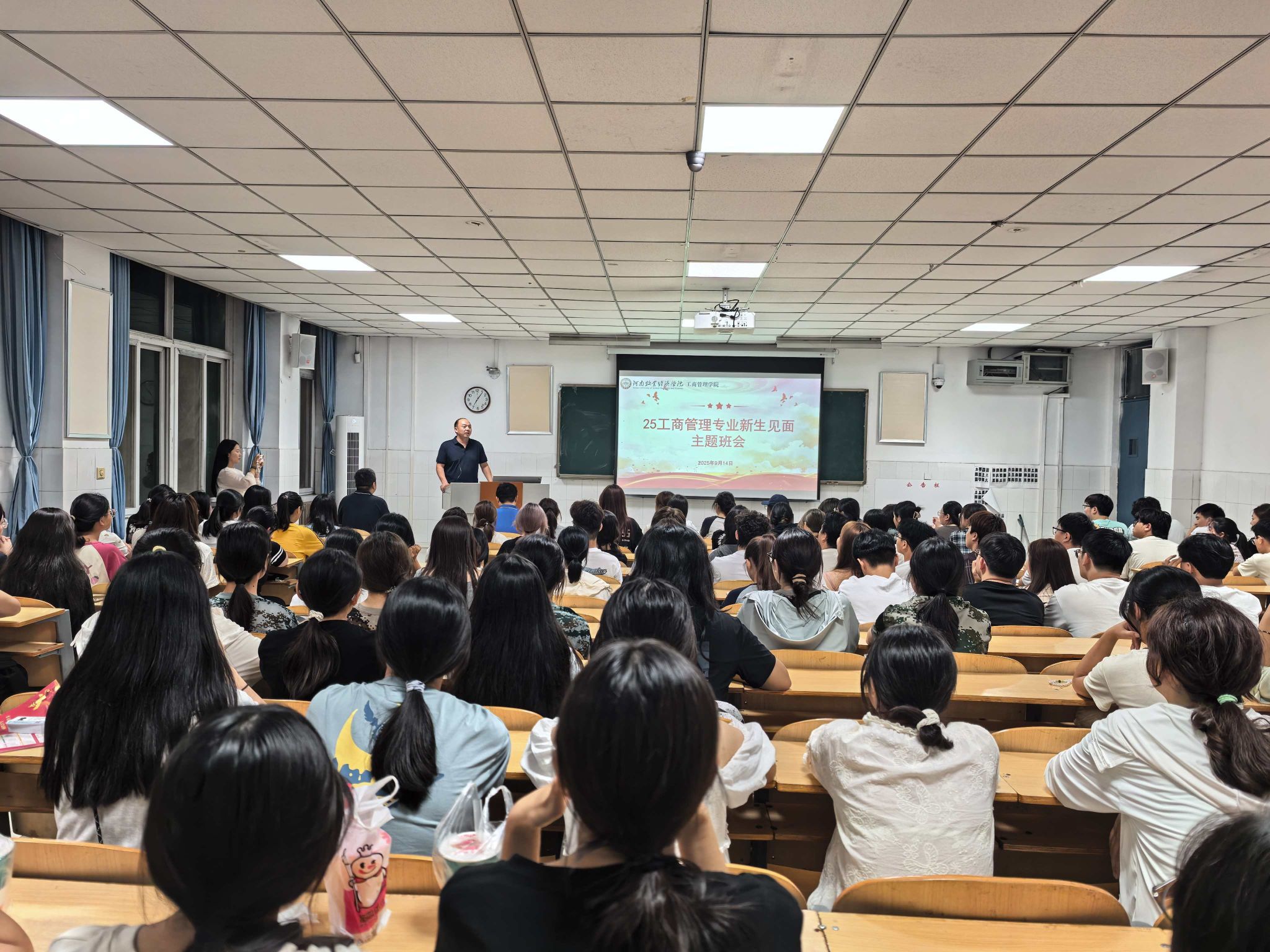 在班会互动环节,新生们积极提问,班主任耐心解答,内容涵盖专业学习、时间管理、人际交往等多个方面。班主任分享时间管理、人际交往的技巧,帮助新生快速融入校园。老师们用通俗的语言介绍专业发展前景、核心课程,缓解新生的迷茫和困惑。通过面对面交流,新生们对老员工活有了更为清晰的认识,减少了对新环境的陌生感和焦虑感。主题班会结束后,新生们纷纷表示受益匪浅。“开学第一课让我掌握了重要的安全知识,明确了大学四年的发展方向。”一位新生感叹道。另一位新生表示:“老师们的讲解很生动,让我对老员工活充满了期待,也知道了如何保护自己和规划未来。”