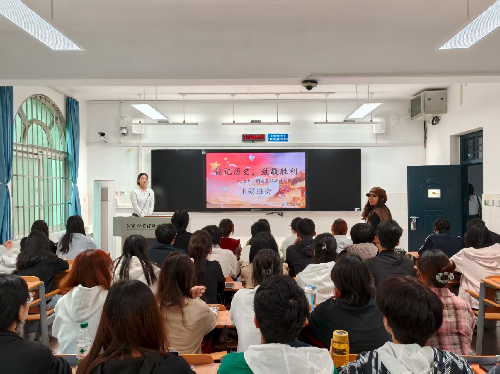 活动期间,各班级辅导员老师、学委和班长围绕“九三阅兵与抗战胜利80周年”这一核心主题,从九三阅兵的盛大场景切入,逐步追溯到抗战时期感人的英雄事迹;既历史事件进行深度剖析,又结合当下衣食无忧的生活对比阐释和平的来之不易,为同学们呈现了一场场精彩纷呈的班会。同时,各班级辅导员老师全程深度参与,不仅在班会过程中针对内容逻辑、情感传递给予专业指导和精准点评,还以平等交流的姿态与同学们共同回顾历史细节、分享自身感悟,在思想的碰撞中进一步拉近了师生之间的距离。另外,同学们以小组为单位,从“抗战精神的时代价值”“青年如何传承红色基因”等不同角度深入探讨抗战精神,现场积极发言、热烈讨论,纷纷表示将铭记历史、勇担使命,把对英雄的崇敬转化为努力学习、报效祖国的实际行动。