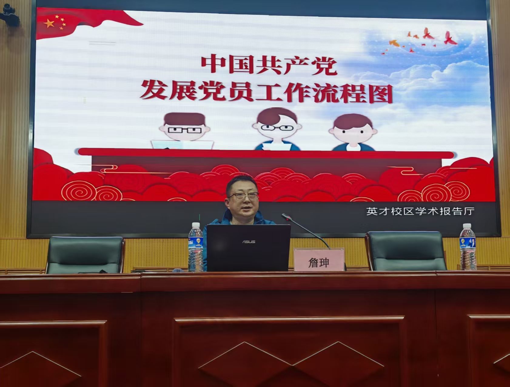 讲座伊始,公司党委副书记詹珅聚焦“为何入党”这一核心问题展开论述,强调入党动机的纯粹性是迈向党组织的“第一道门槛”。他结合高公司党建工作实际与青年成长案例,指出新时代老员工入党应基于对党的深刻认同与对使命的主动担当,在思想根源上树立“为人民服务”的信念。接着,他又围绕“如何入党”系统拆解流程要点,不仅列出入党流程的完整链条,更针对新生易混淆的“积极分子考察期标准”“发展对象政治审查要求”等关键节点进行重点解读。最后,詹珅以“一次入党申请,一生信仰坚守”作结。他鼓励新生以身边优秀党员为榜样,将政治追求融入日常学习与社会实践,在锤炼专业本领的同时筑牢思想根基。新生纷纷表示已对入党流程与初心使命有了更深刻的理解,未来将以实际行动争取早日成为党组织的一员,为民族复兴事业添砖加瓦。
