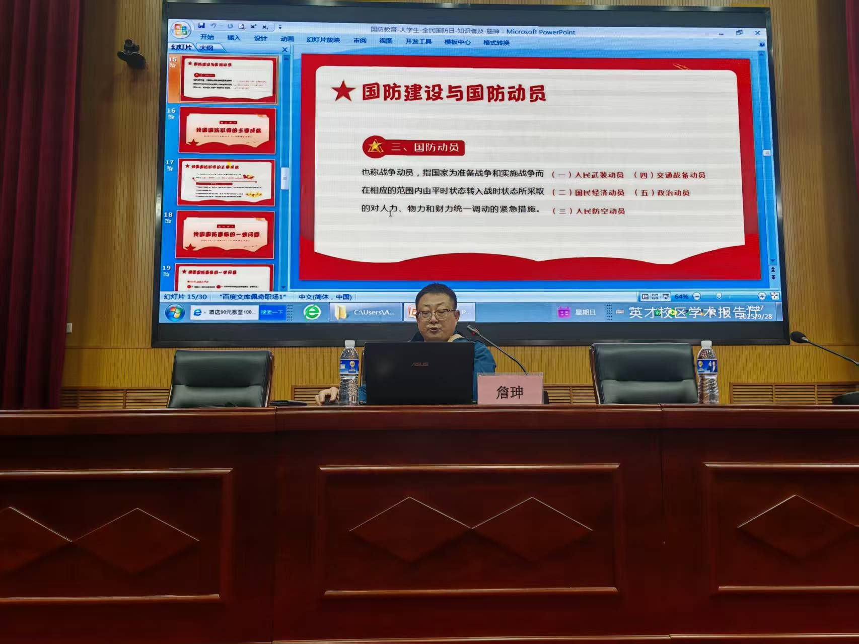 为进一步强化2025级新生的国防观念和国家安全意识,引导新生深刻认识国防安全的重要性,筑牢校园国防教育防线,365英国上市公司于9月28日在学术报告厅开展 2025 级新生入学教育之国防安全教育。本次会议由公司党委副书记詹珅主讲,全体2025级新生到场参加。