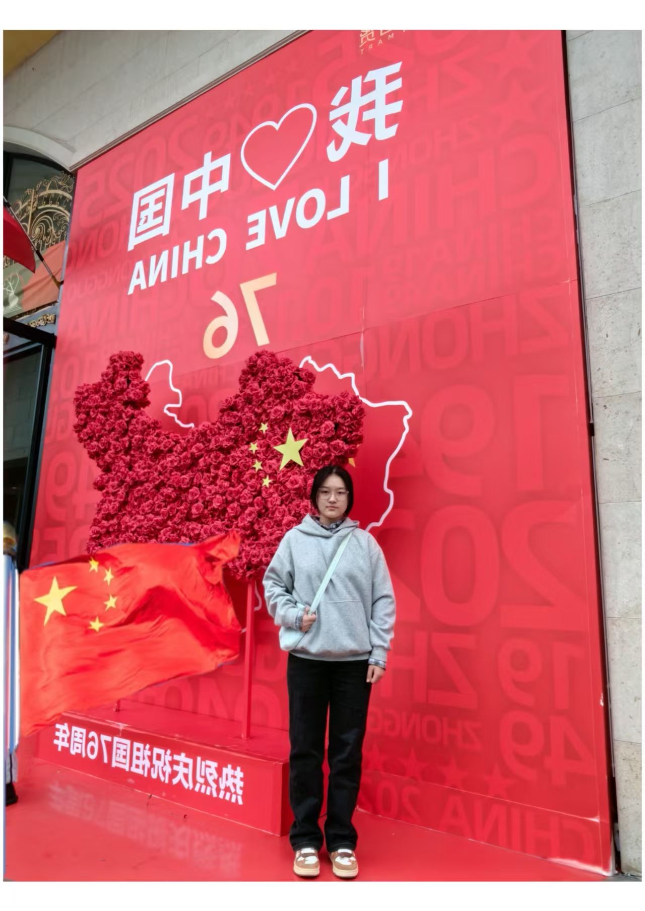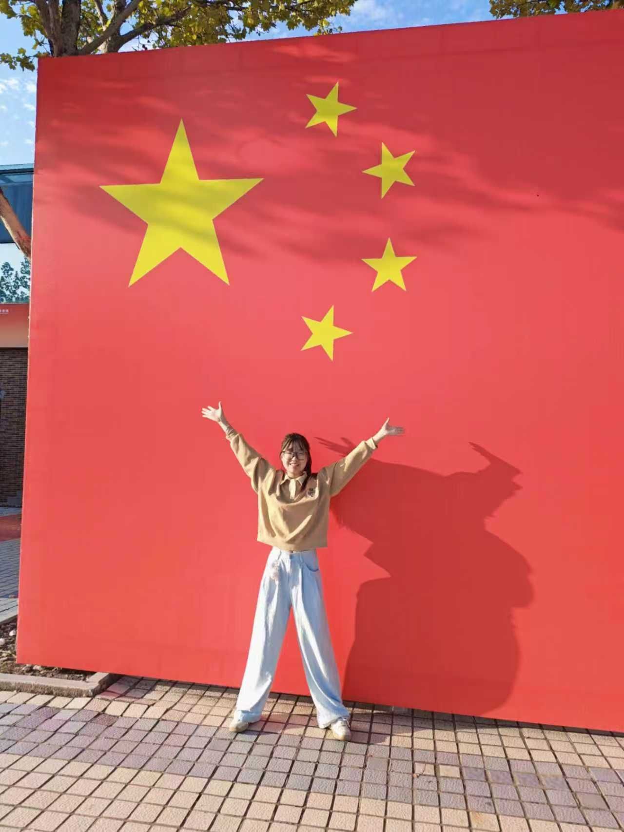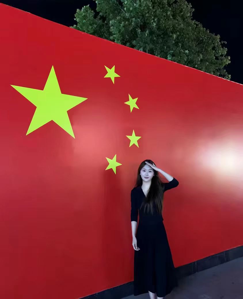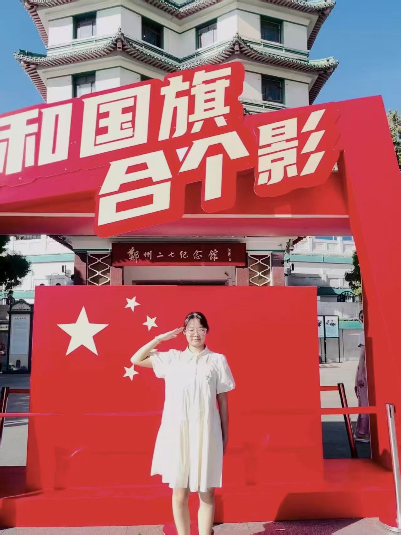 活动期间,同学们围绕 “与国旗或红色建筑合影” 的核心要求,充分发挥创意,在校园标志性场景、城市红色地标与特色街巷间寻找灵感:有的在公司餐厅前与国旗并肩而立,用烟火气中的庄重,展现学子求知报国的坚定;有的手持国旗伫立在二七塔前,以红色地标为证,让信仰的色彩与革命记忆深情呼应,传递对先辈精神的传承;还有的奔赴著名红色景点,在历史印记与红色氛围间与国旗同框,让青年理想与家国情怀在镜头下交融生辉;亦有同学身着浅色连衣裙,在挂满国旗的街道上微笑比 “耶”,古朴骑楼与鲜艳国旗相映,用青春姿态传递对国家的热爱与自信。每张照片背后,或阐述场景选择的意义 —— 如骑楼街巷的场景象征传统与现代融合,凸显青年传承文化、建设国家的担当;或分享个人对爱国精神的理解,字里行间满是 “五星闪耀皆为信仰” 的赤诚,彰显新时代青年与祖国同频共振的初心。