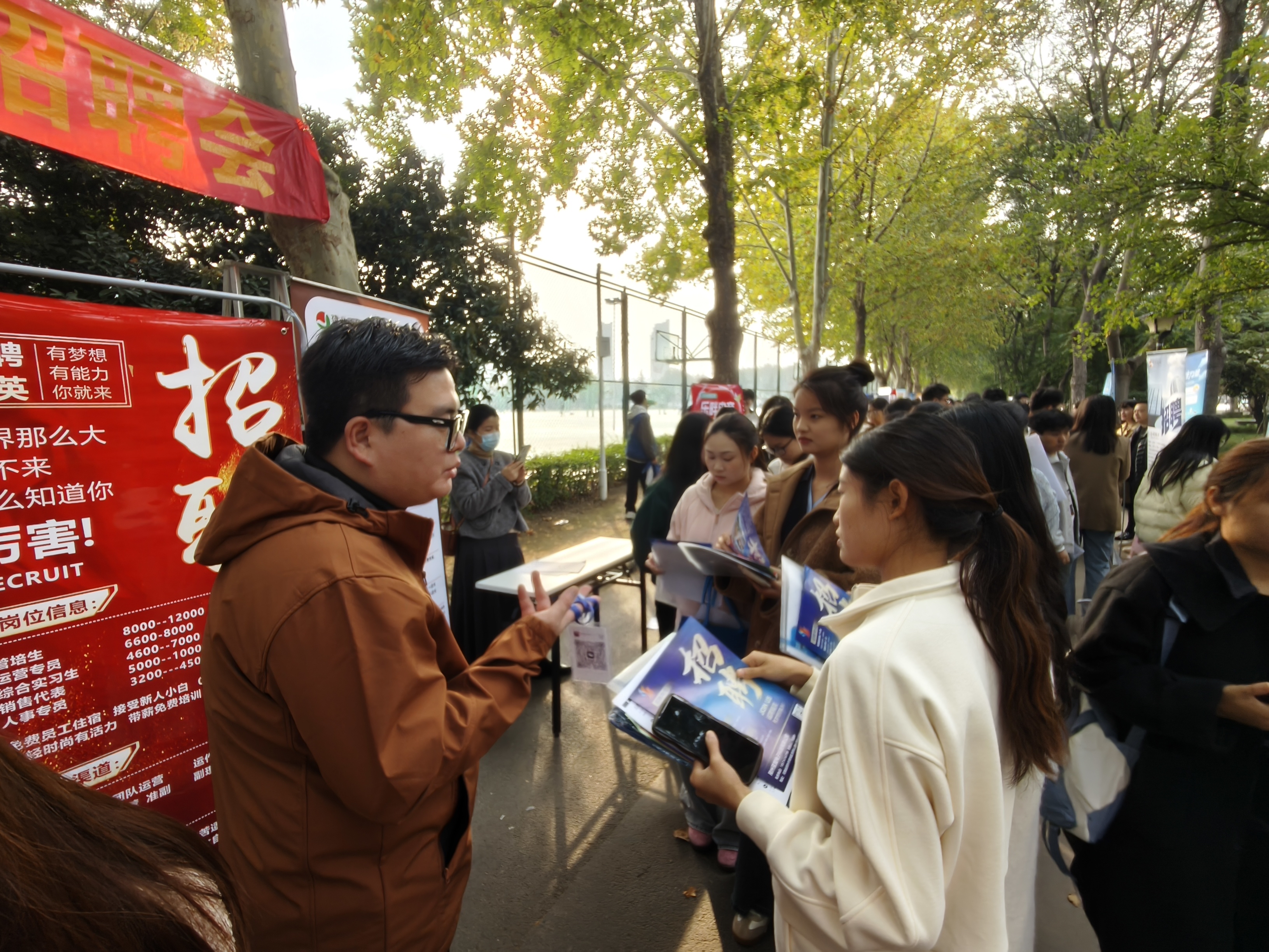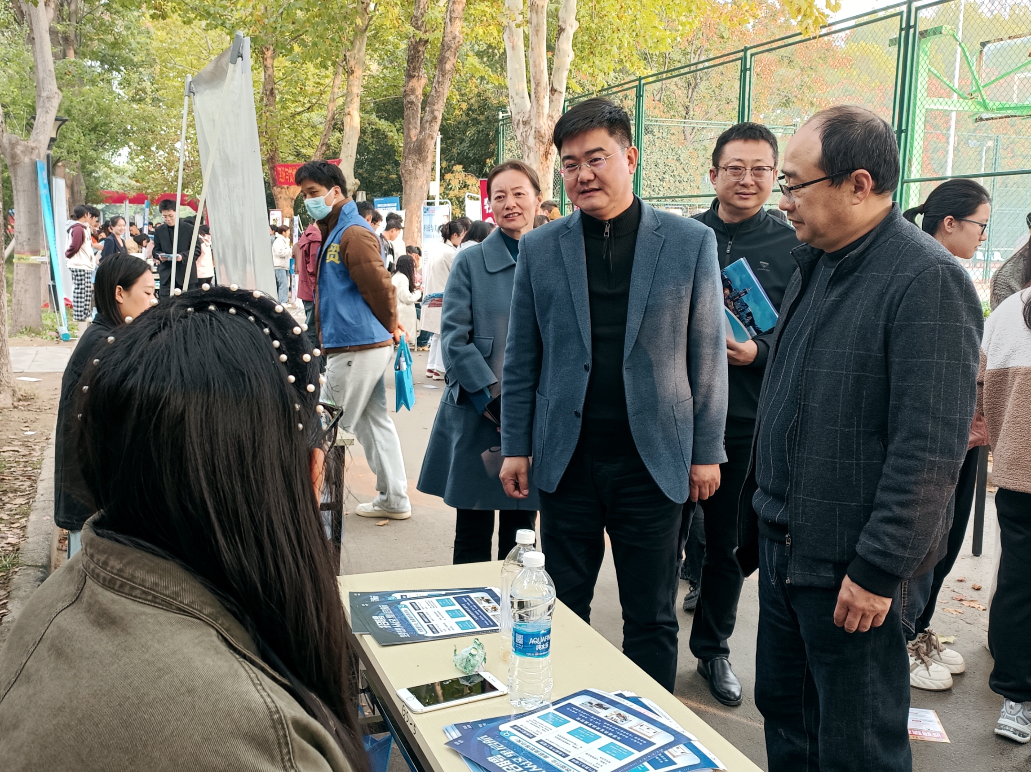 校老员工就业创业指导服务中心主任胡先峰、副主任张琳、公司党委书记王国辉、党委副书记詹珅等领导亲临双选会现场,与企业代表进行深入交流。他们详细询问了企业行业属性、岗位人才需求及培养方向等,为企业提供精准对接服务,为探索校企合作与育人新模式奠定坚实基础。同时,也为毕业生提供现场应聘指导、面试技巧点拨及岗位精准推介,鼓励员工主动与用人单位沟通,助力员工高效求职。活动现场气氛热烈,参会企业通过特色展位布置、详细招聘手册发放等形式,全方位展示企业文化、核心业务、岗位要求、薪酬福利体系等;毕业生们手持简历,主动前往意向企业展开深入交流,企业招聘人员从多维度为员工提供个性化职业建议,帮助员工明确职业方向,提升求职能力,为顺利就业筑牢基础。据不完全统计,本次双选会公司应邀企业共提供岗位740多个,现场收到求职简历460多份,建立求职微信群24个,加群人员1430多个。后期公司将继续和这些企业深度联系,努力为员工提供更多的求职服务,助力毕业生顺利求职成功。