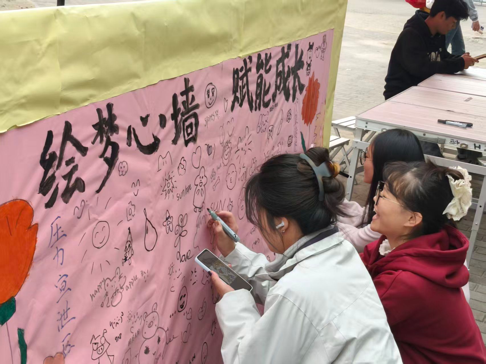 此次活动以趣味性、互动性强的涂鸦为载体,降低同学们对心理话题的抵触感,通过“压力宣泄”与“希望传递”的双向设计,助力大家以健康心态面对挑战,营造温暖和谐的校园文化环境。未来,公司将继续推出更多形式多样、内容丰富的心理健康活动,助力同学们以更健康、积极、阳光的心态,面对学习与生活的各种挑战。