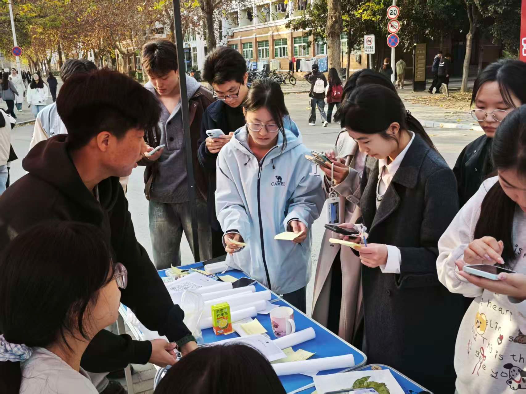 活动现场氛围热烈,同学们纷纷带来书籍、文具、饰品等闲置物品。活动以“旧物+故事”为核心形式:参与者需在便签上标注闲置物品的背后意义或经历,或者写下暖心祝福,将闲置物品转化为承载心意的“情感载体”。从备考笔记到社团纪念摆件,每件旧物都成了青春故事的体现。而拿到旧物的同学,也收获了满溢的感动:有人翻开挑选到的专业书籍,扉页上实用的学习批注让其感叹“像收到一份贴心的‘学习指南’,比全新书籍更有参考意义”;有人拿起心仪的手工饰品,读到卡片上关于物品创作的温馨回忆时表示,“仿佛透过这件小物件感受到了陌生人的心意,每次看到都觉得很温暖”;还有人选中一本闲置手账,里面记录的日常感悟让其直言“像是意外收到了一份成长礼物,能从文字里获得治愈的力量”。