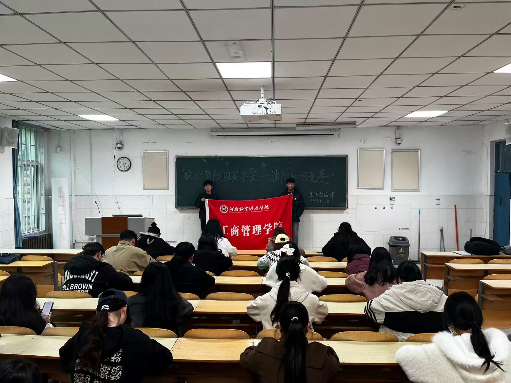 此次竞赛以手机为答题平台,题目经过精心打磨,涵盖火灾预防、火灾扑救、逃生自救等多个方面的消防知识。同学们凭借扎实的消防基础知识和敏锐的分析能力,从容应对一道道颇具挑战性的题目,充分彰显了过硬的消防知识储备与临场应变能力。答题环节结束后,竞赛负责人秉持着公平、公正、公开的原则,对同学们的答题成绩进行了认真细致的评审。这不仅是对同学们积极学习消防知识的认可和鼓励,更是对他们在消防安全方面所付出努力的肯定。参与同学纷纷表示,通过此次答题,不仅系统巩固了消防理论知识,更在模拟场景类题目中学会了如何快速应对初期火情、正确使用灭火器等实用技能,切实提升了应对火灾隐患的实际能力。
