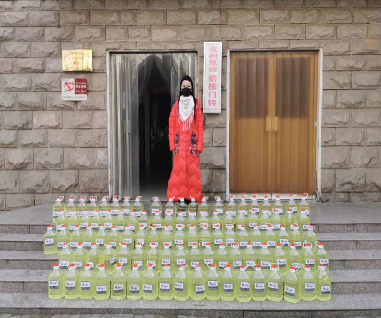 谈起这批捐赠物资,周倩老师说:“我已经筹备很久了。得到公司防控物资匮乏的消息,我就开始筹划这件事。因为当前防控物资紧张,又怕买到假货,所以我一直在找,一直在对比,直到前段时间通过熟人,才确定这批合格的84消毒液。”