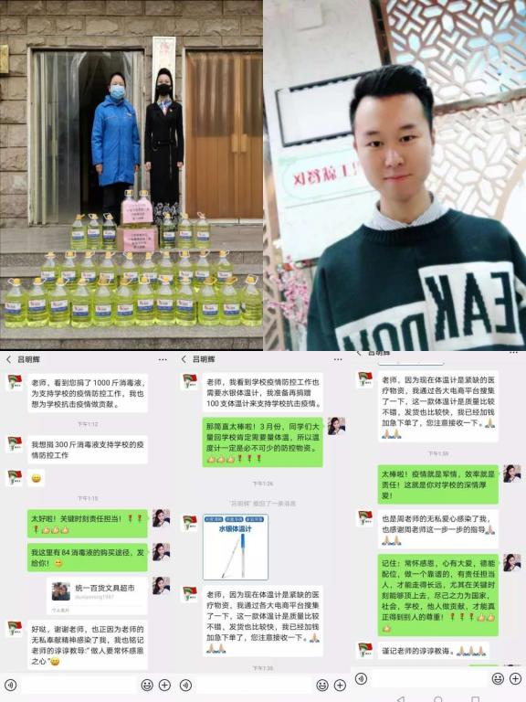作为一名预备党员,16市营一班的吕明辉,充分发挥了员工党员的模范带头作用。当看到公司领导深入一线检查指导疫情防控工作,和全校师生争相捐赠疫情防控所需物资时,他深受感染,于是向校医院捐赠100支水银体温计和300斤84消毒液,总价值2100元。为抗击疫情献出了自己的一份爱心。