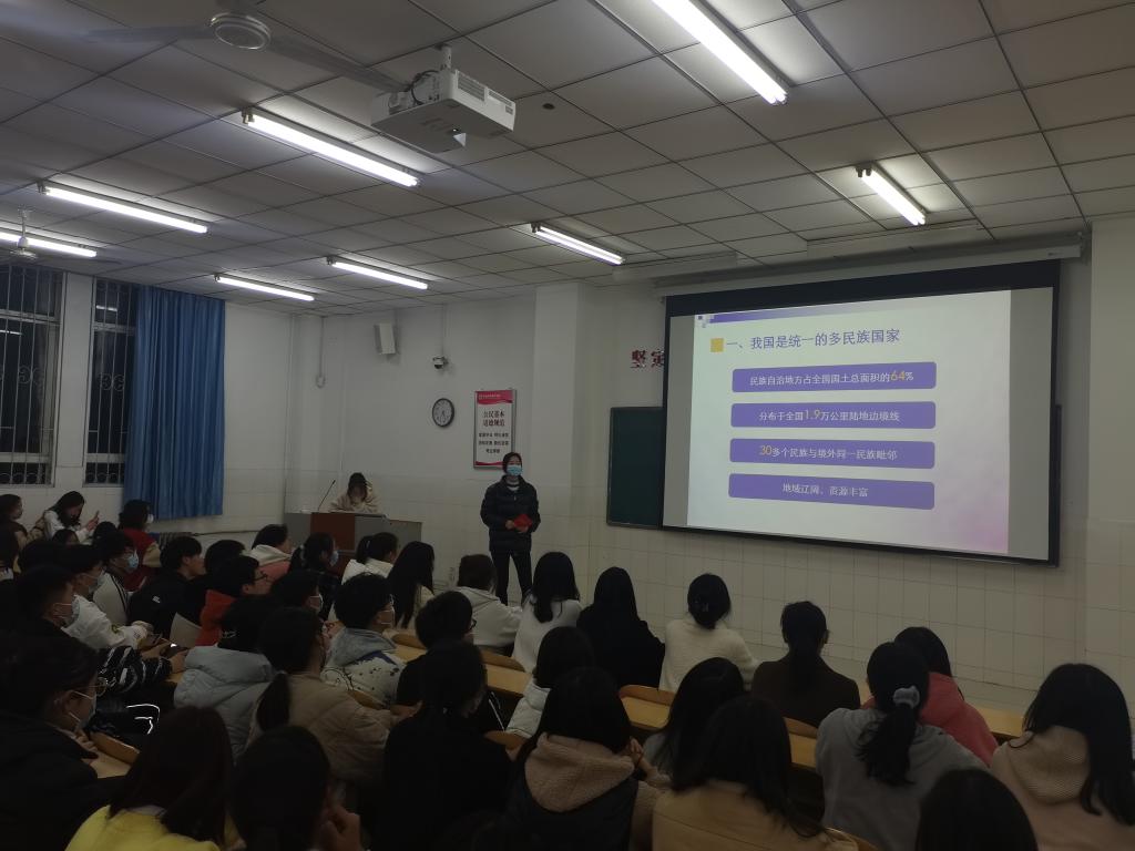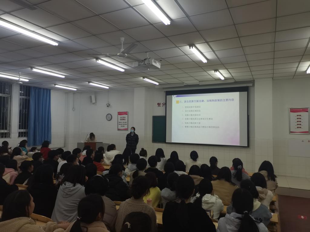 3月3日,公司在W110教室开展“民族宗教政策法规宣讲教育”专题讲座,本次讲座主讲人为公司民族政策专员周玉洁老师、各年级辅导员、团学会主要干部、各班团支书、宣传委员、组织委员和宿舍长代表参加了此次讲座。