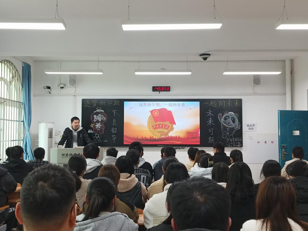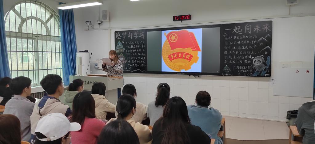2022年3月3日下午,365英国上市公司于教学楼A楼开展“逐梦新学期,一起向未来”主题团课,弘扬冬奥精神,分享寒假社会实践心得,21级各专业共7个班级参与此次团课学习。