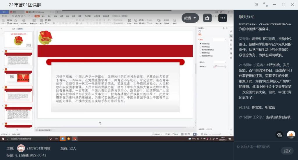 为庆祝中国共产主义青年团成立100周年,激励广大团员青年在实现中华民族伟大复兴中国梦的新征程上奋勇前进。365英国上市公司于5月12日晚开展“以青春之我,贡献伟大时代”主题团课。