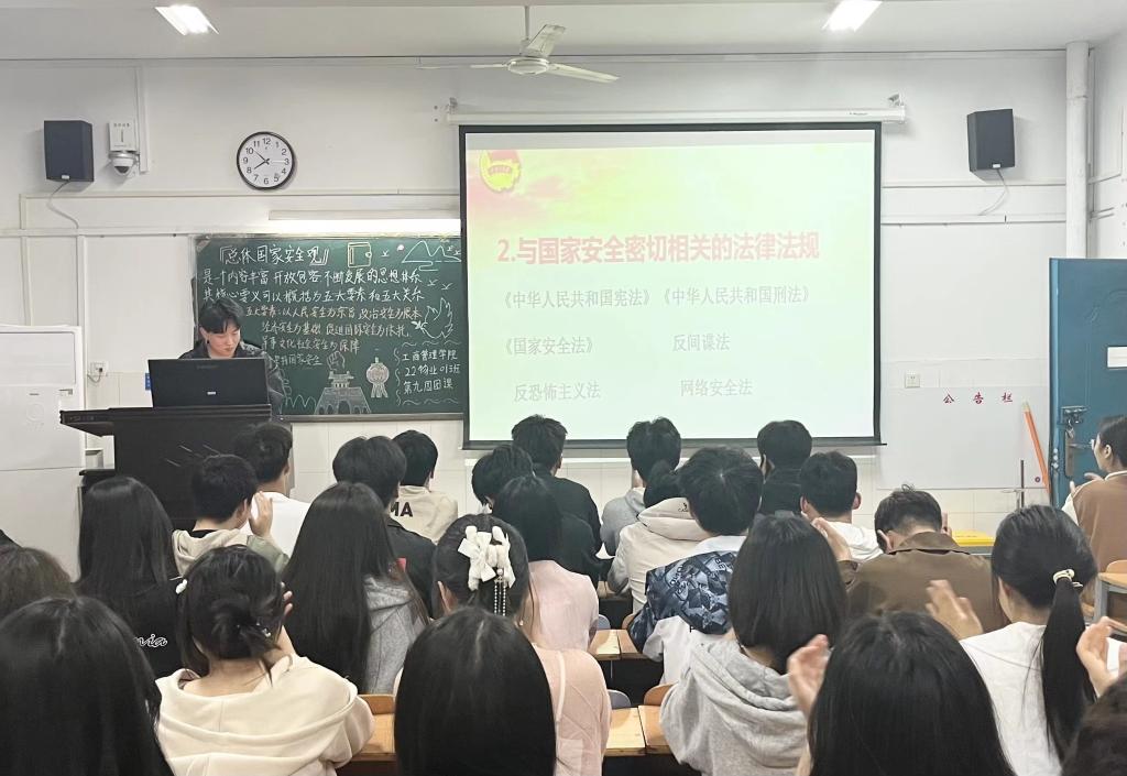 团课伊始,各班团支书通过视频播放,从总体国家安全观的概念、内涵、以及与人民生活的联系等方面带领同学们由浅入深地认识了总体国家安全观,国家安全是国家生存与发展的重要保障,只有国家安全稳定,广大青年员工才能拥有良好的学习环境和生产、生活环境,生命安全、财产安全才能得到保障,进而创造更加美好的生活和未来;接着,各班团支书向同学们讲述了当前和平与动荡并存的国际局势,指出全面加强国家安全教育的重要性,号召同学们增强国家安全意识、为维护国家安全积极建言献策、检举并制止危害国家安全的行为、监督和维护国家安全工作的开展。最后,各班团支书带领同学们齐声合唱团歌,深刻展现出同学们坚定维护总体国家安全、捍卫国家利益的决心。大家纷纷表示,在今后的学习与生活中,将努力做到自觉关心、维护国家安全,为建设安全稳定的国家贡献力量。