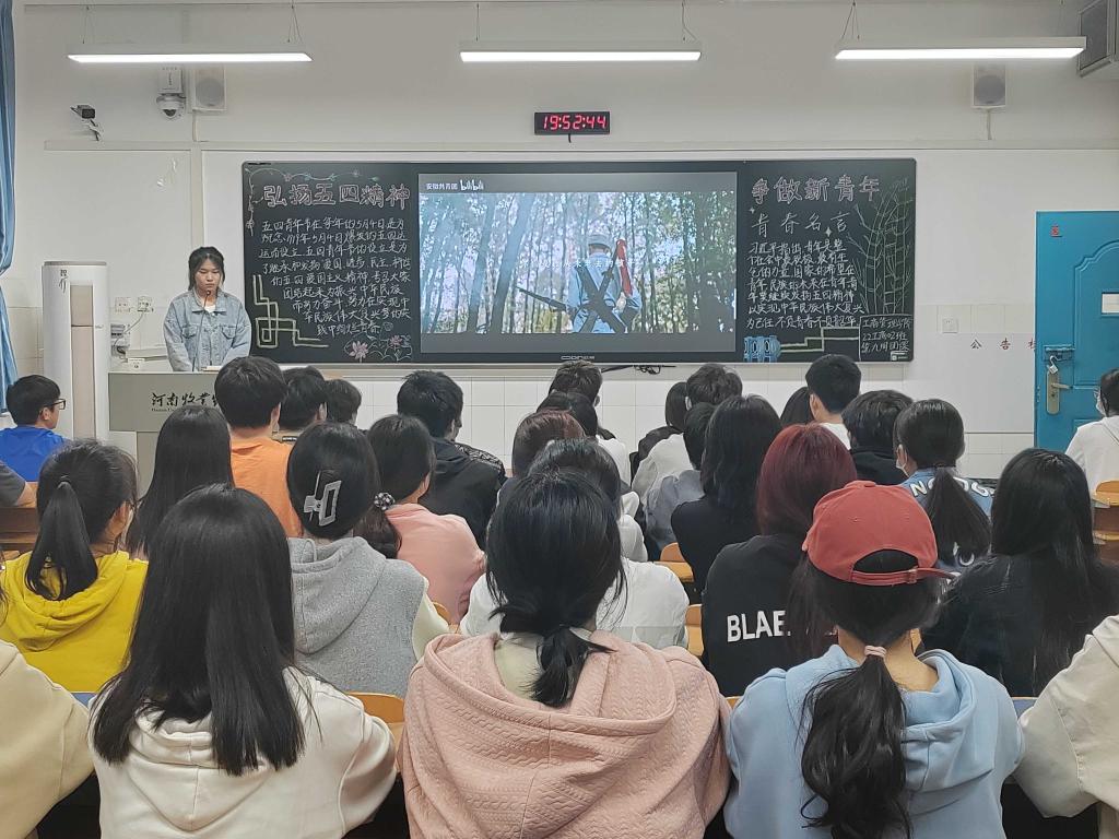 团课伊始,各班团支书带领同学们回顾了百年来的青年运动史,从新民主主义革命时期青年运动史、社会主义建设时期青年运动史、改革开放新时期青年运动史等三个历史阶段展开叙述,形象而深刻的展现了百年来青年运动的波澜壮阔,也以事实展现了百年来中国共产党的与时俱进、砥砺前行。接着,各班团支书通过视频组织同学们认真学习习近平总书记在纪念五四运动100周年大会上的讲话,激励同学们继承发扬永久奋斗的伟大传统,自觉担当党和人民赋予的时代重任,在实现中华民族伟大复兴中国梦的历史进程中创造自己的精彩人生。最后,各班同学就“如何做一个对社会有益的新时代青年”进行讨论,同学们热情高涨,纷纷表示会努力在学习中增长知识、锤炼品格,在工作中增长才干、练就本领,在做好每一件小事、完成每一项任务、履行每一项职责中积小胜为大胜,把个人的小我融入祖国的大我、人民的大我中去,挺立时代潮头,勇做时代先锋。