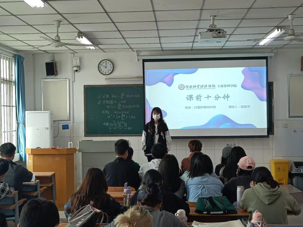 青年的性格就是时代的性格。21国商01龚雪萍同学以“担当时代责任,传承五四精神”为主题讲述五四青年的英勇事迹与伟大精神,向同学们传达五四精神,展现公司员工时代风貌。