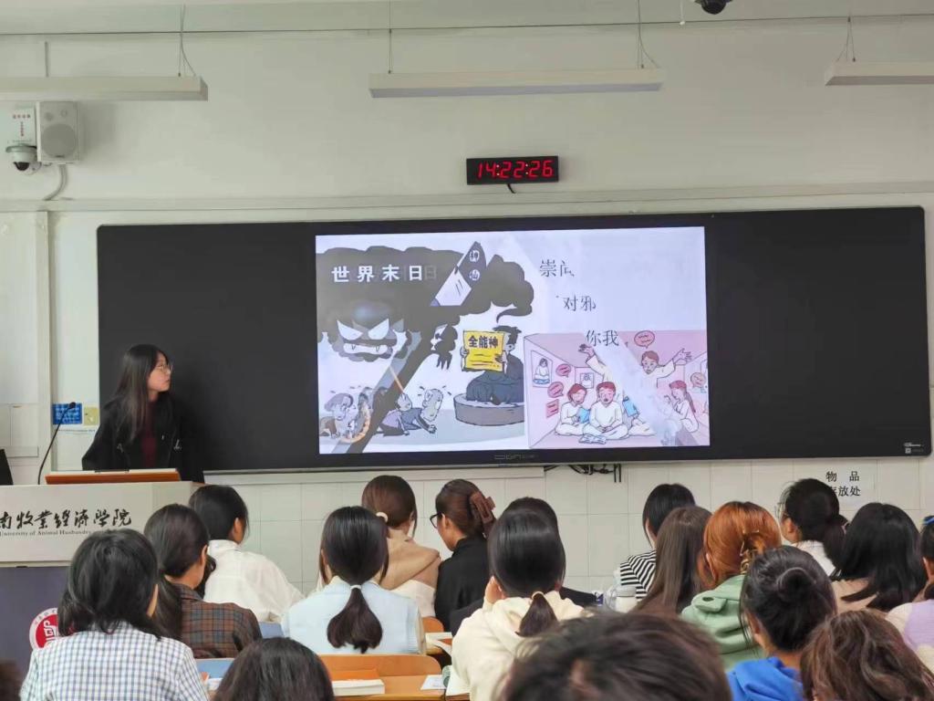 23工商01班夏冰瑶同学从侧面举例讲述一系列青年堕入邪教的悲惨事迹,从而促进员工们进一步认清邪教反人类、反社会、反科学、反政府的反动本质和丑恶嘴脸,对邪教的危害更深入地了解。