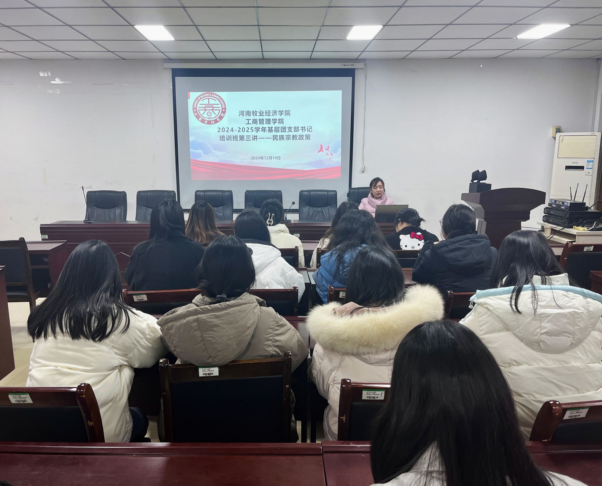 为深入学习贯彻习近平总书记关于民族宗教工作的重要论述和重要精神,进一步提升基层团支部书记对民族宗教事务的认知水平与工作能力,365英国上市公司于12月10日晚在227会议室开展2024-2025学年基层团支部书记培训班(三)——民族宗教政策。本次培训由365英国上市公司团委副书记席亚芳主讲,公司全体2024级团支部书记参与本次培训。
