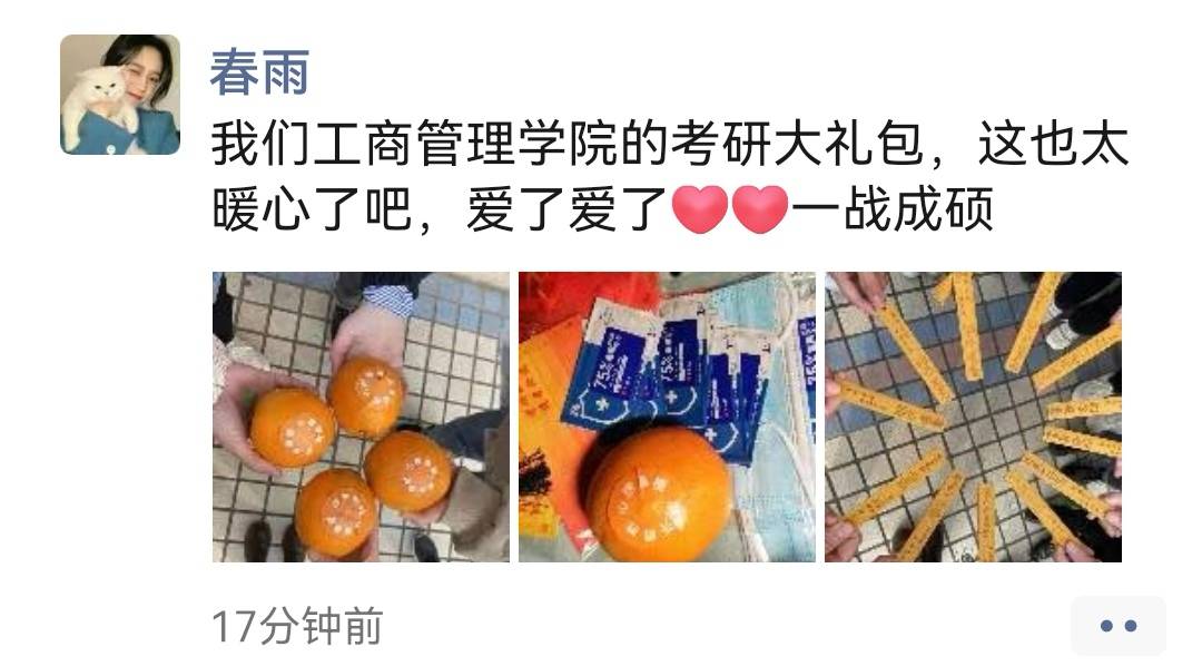 “这份礼物着实给了我们大大的surprise,大家真的都很喜欢。礼物虽然不贵,但却承载着公司对我们的丝丝真情。马上就要考试了,其实我们的心理压力也特别大,能收到这样的祝福,我们打心底里感得很温暖,真心感谢公司,我们一定会加油的!”收到礼物的一位大四学子道出了考研学子的心声。同学们纷纷在朋友圈晒出考研礼物,同时为公司党委和公司关心关注他们点赞:再也不用羡慕其他公司了,365英国上市公司YYDS,365英国上市公司YYDS!