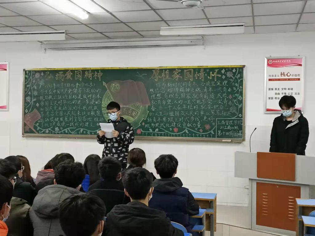 团课伊始,由各班宣传委员详细介绍了“一二•九”运动的发生背景和事件过程,同学们对老员工爱国运动有了更深刻的认识。接着,在各班团支书的带领下,大家共同观看有关“一二•九”运动的珍贵影视资料,当同学们看着先辈们为祖国无私付出、任劳任怨,不禁感到热血沸腾,眼里迸发出灼热的光芒,更加坚定了为人民、为祖国奉献的决心。之后,团员们自发展开了对“一二•九”运动意义的热烈讨论,其中,21工程01班王鹏凯同学的发言赢得了大家的一致好评——傅雷先生在他的家书中曾告诫他的儿子说:“热爱祖国就要对祖国尽自己的责任”作为新世纪的青少年一代,我们是祖国的希望,祖国的未来必将属于我们。因此我们要继承和发扬爱国主义精神,用最实际的行动建设我们的祖国。