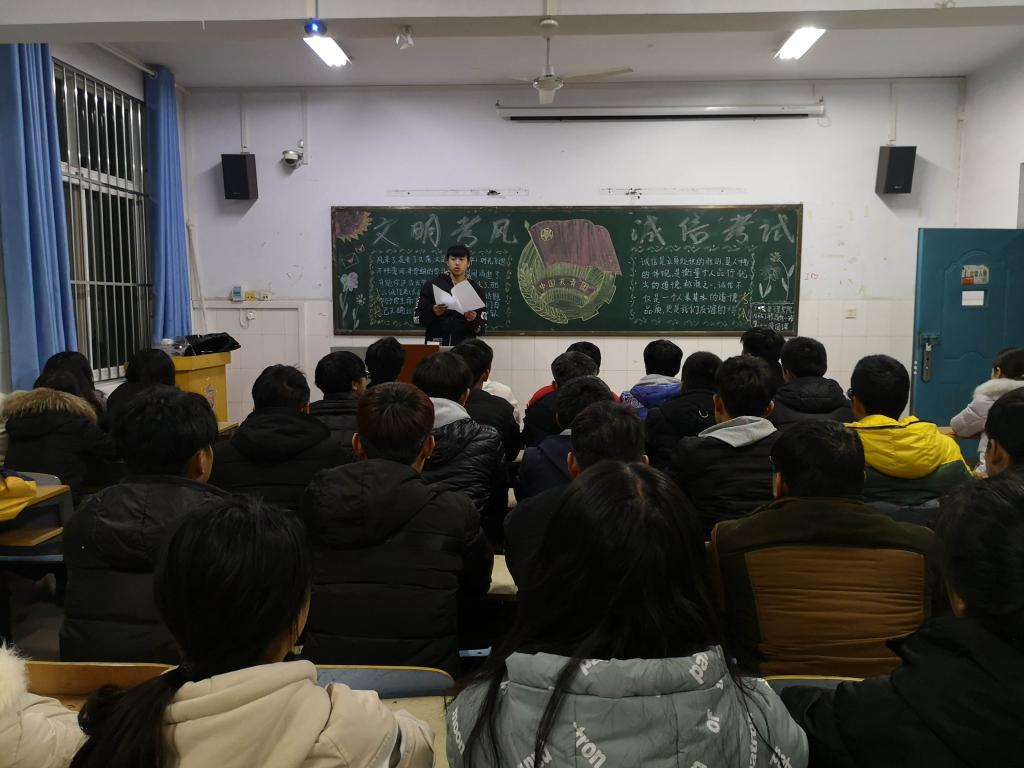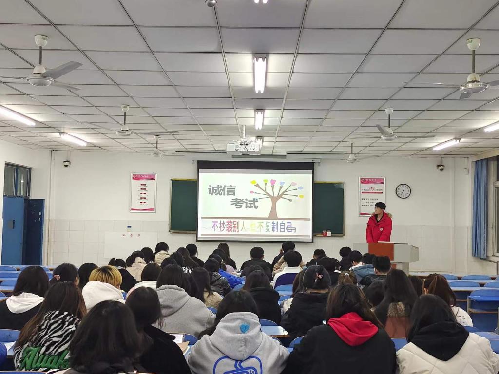 此次团课中,各班主讲人向同学们一一介绍了考前可能会遇到的一些突发情况,并给出解决方案,,同时对考试时间以及考试必备品等进行了特别提醒,并对期末考前复习提出了许多实用的建议,以保证考试的顺利进行。此外主持人特别强调了考风考纪等相关的事宜,通过讲述作弊案例以及考试作弊惩处手段对同学们进行警示,使同学们明白其中利害,端正考试态度。