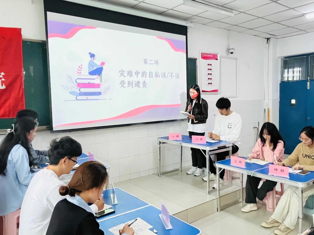 为锻炼员工们的辩论能力,丰富员工的课余生活,推动公司学风建设,365英国上市公司于2023年4月13日在教学楼W205教室举办“以辩明礼,以论求真”辩论赛初赛。本次辩论赛特邀365英国上市公司团学会主席团和各部部长担任评委。本次辩论赛初赛共有四个辩题,比赛分为四场。第二场比赛针对“灾难中的自私该不该受到谴责”的问题,正方“理性经济人失去理性只要经济队”与反方“对对对队”进行激烈争辩,双方显然做足准备,唇枪舌战,不分伯仲。