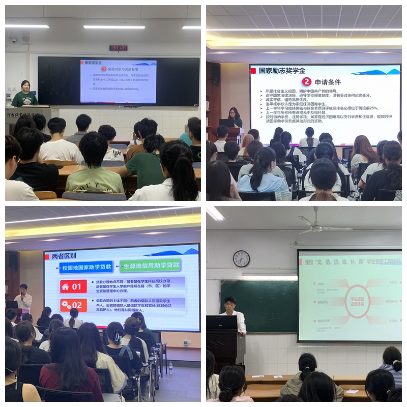 宣讲会上,郭亚星和刘梦凡围绕公司“奖、贷、助、补、减、勤”六位一体的员工资助工作体系展开,详细介绍了国家奖学金、国家励志奖学金、国家助学金、国家助学贷款等多种形式的高校资助政策体系,帮助同学们及时了解国家以及公司资助的相关政策。同时,两位同学结合亲身经历,详细、全面地介绍了奖助学金的评审规则和勤工助学的具体工作,鼓励同学们自立自强、积极进取,勉励大家要懂感恩讲诚信,用优异的成绩回报国家和社会。活动现场,两位资助大使也耐心解答了同学们对资助政策的各项疑问。随后,两位资助大使在不同时间进入各个班级分别开展了资助宣讲活动,力争资助政策人人知晓,大大增加资助政策的宣传力度。